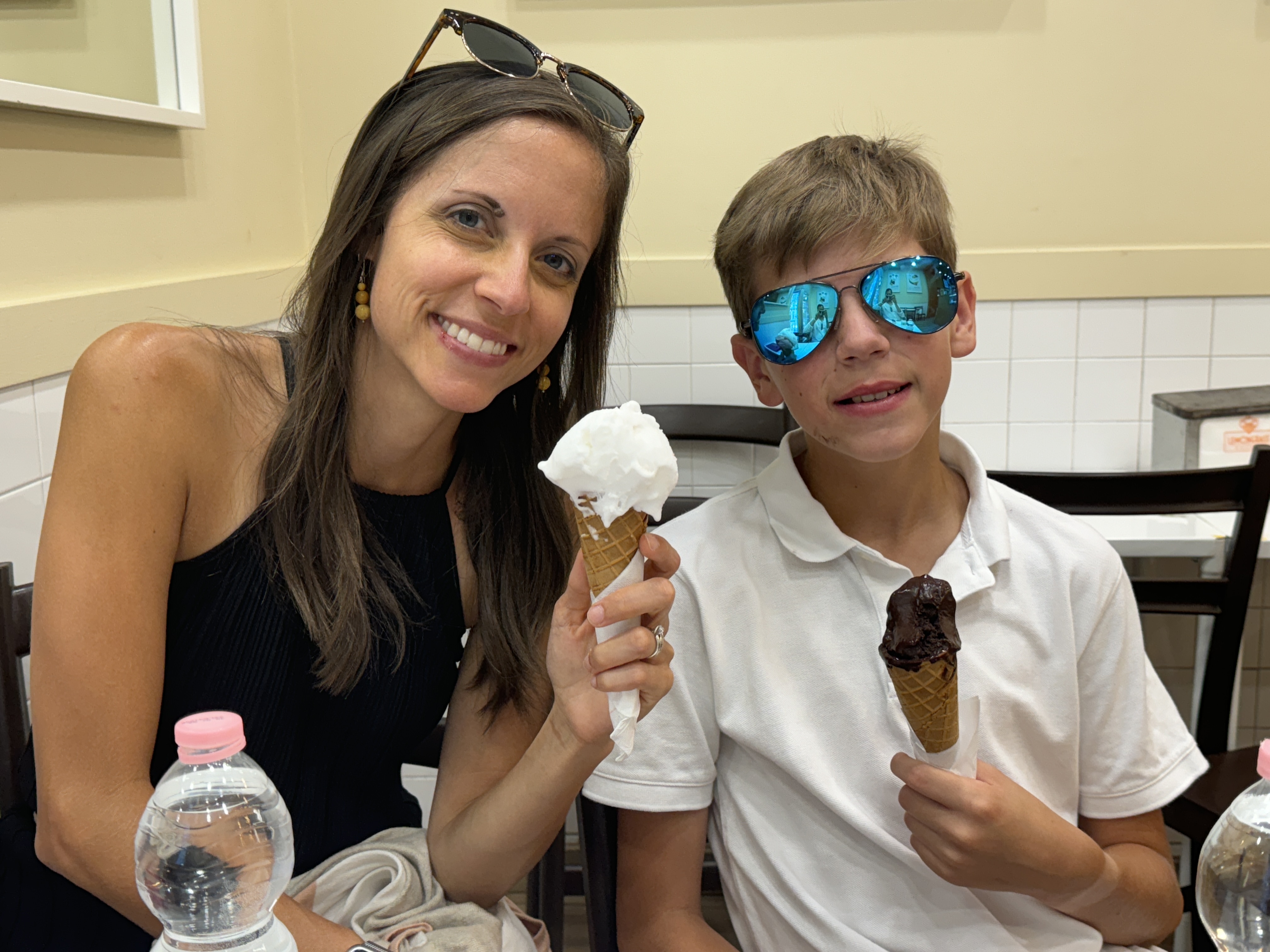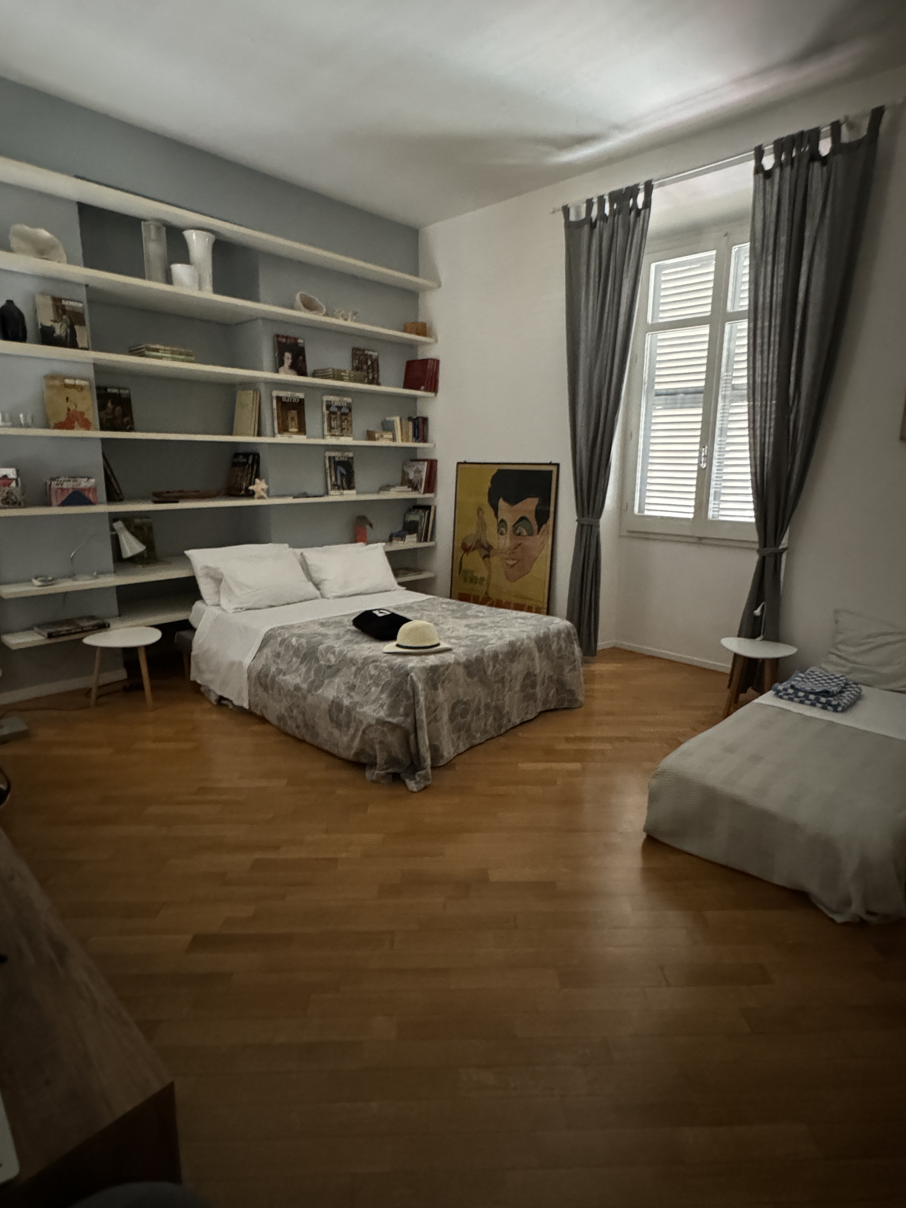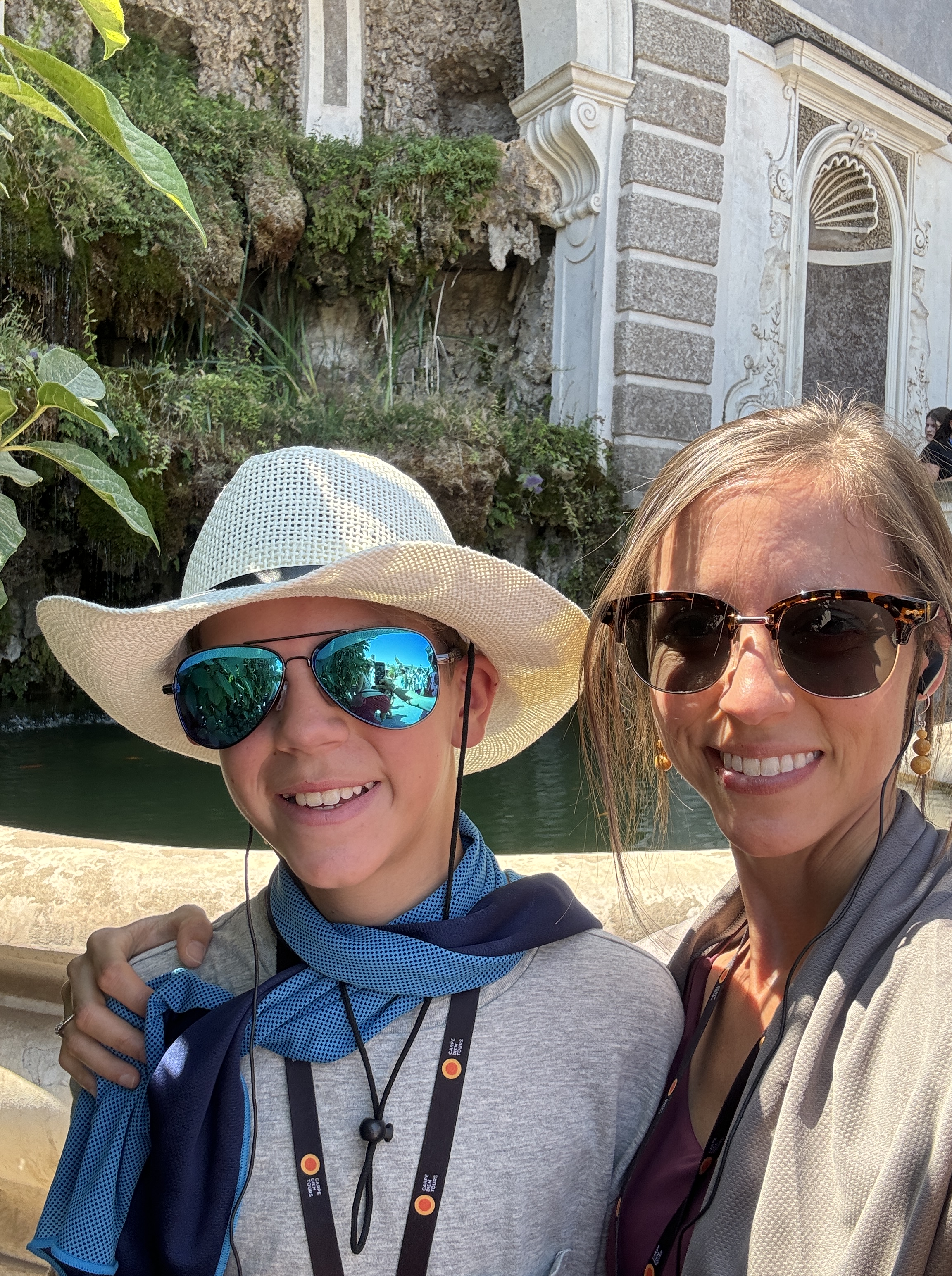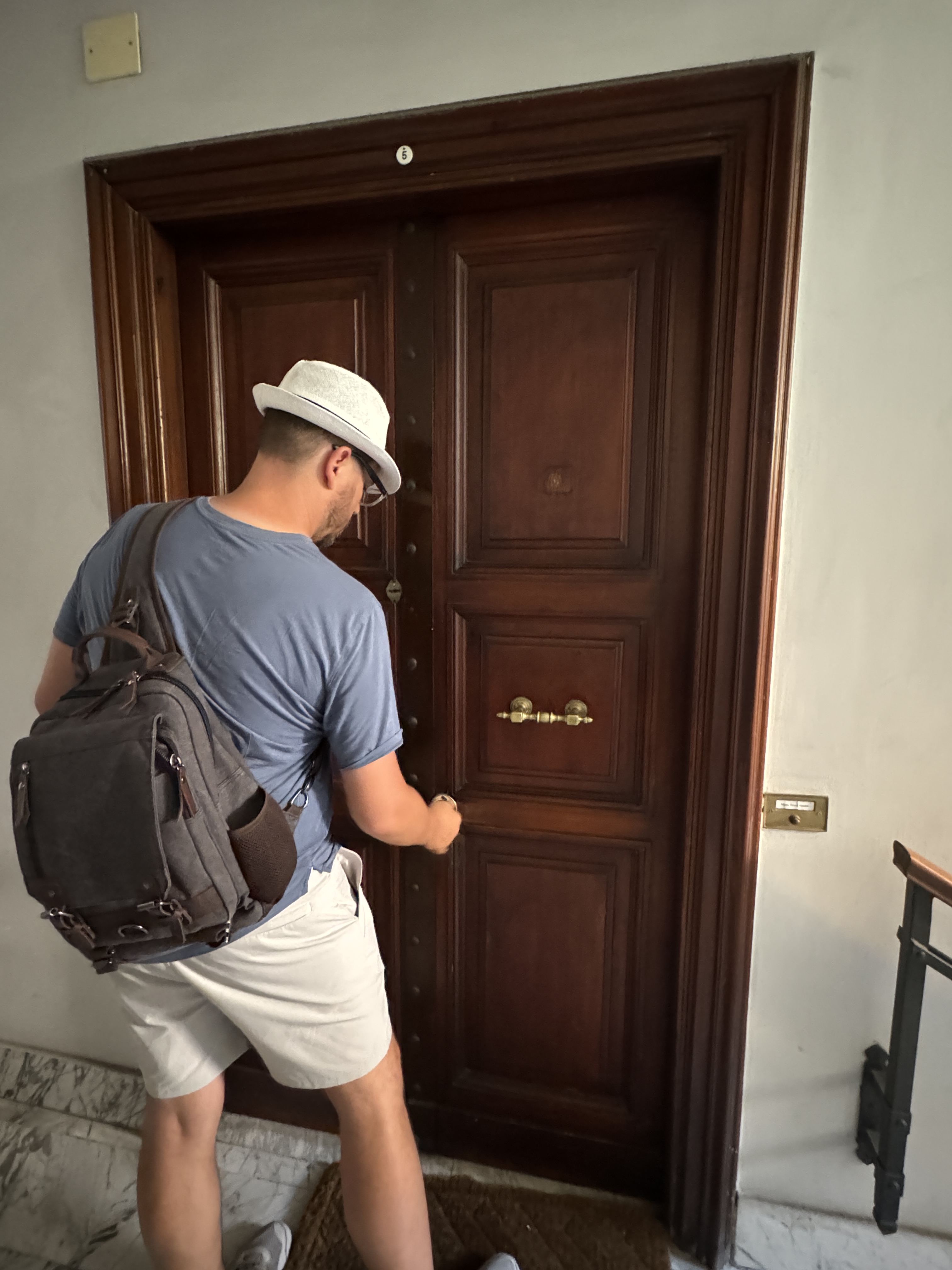 - While we loved the tour, we were glad to return to our Airbnb for some cool reprieve. We now have a solid rhythm for these afternoon breaks. Michael naps, Amber showers, and Liam watches a show. This Airbnb was just perfectly Italian. We shared one giant room., with a kitchen and bathroom off to the side. When we talked about this place while planning, we always called it the one with the giant poster. We love the huge wooden doors to get in and the cutest courtyard outside. While we’ve had a good mix of hotels and Airbnbs, the Airbnbs definitely make us feel like we are a part of the city.