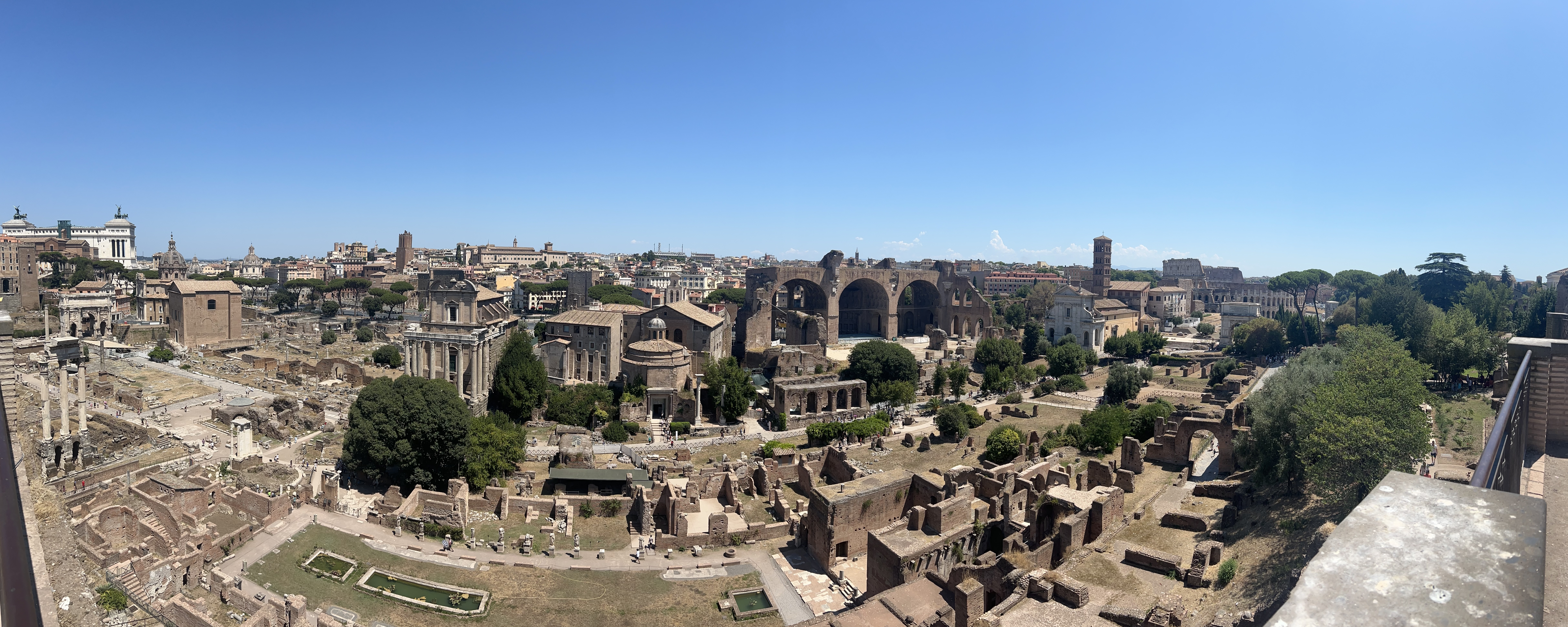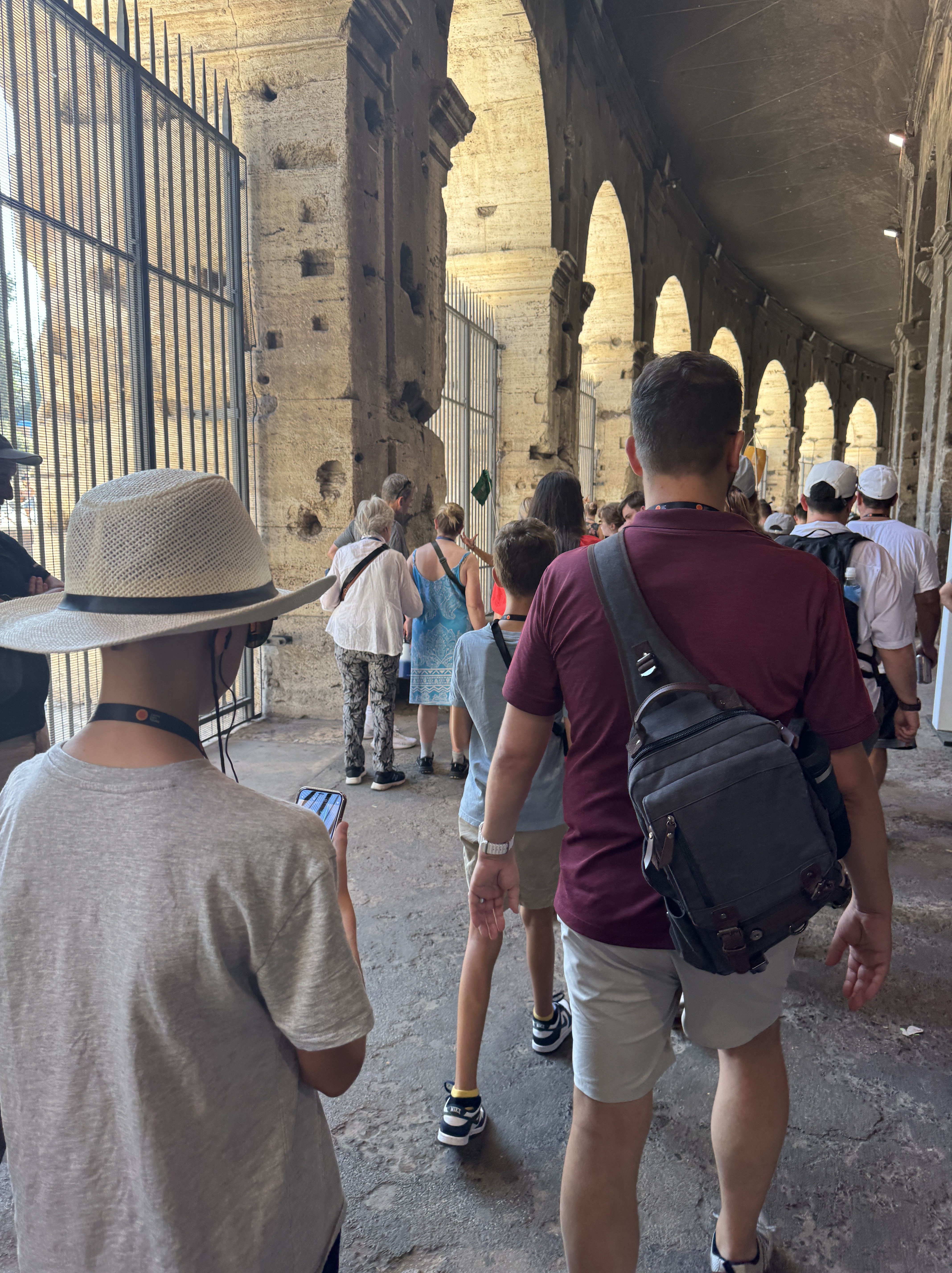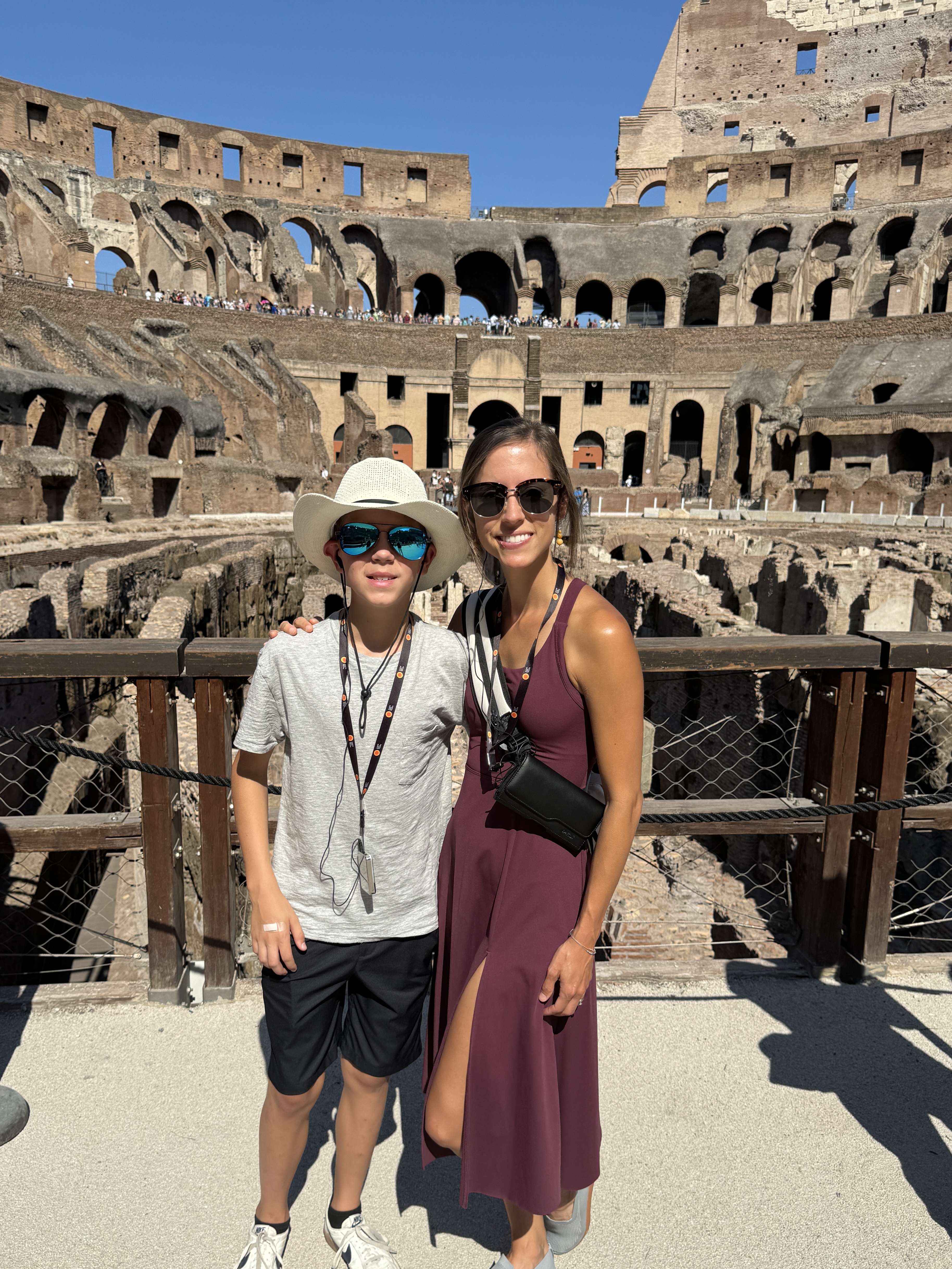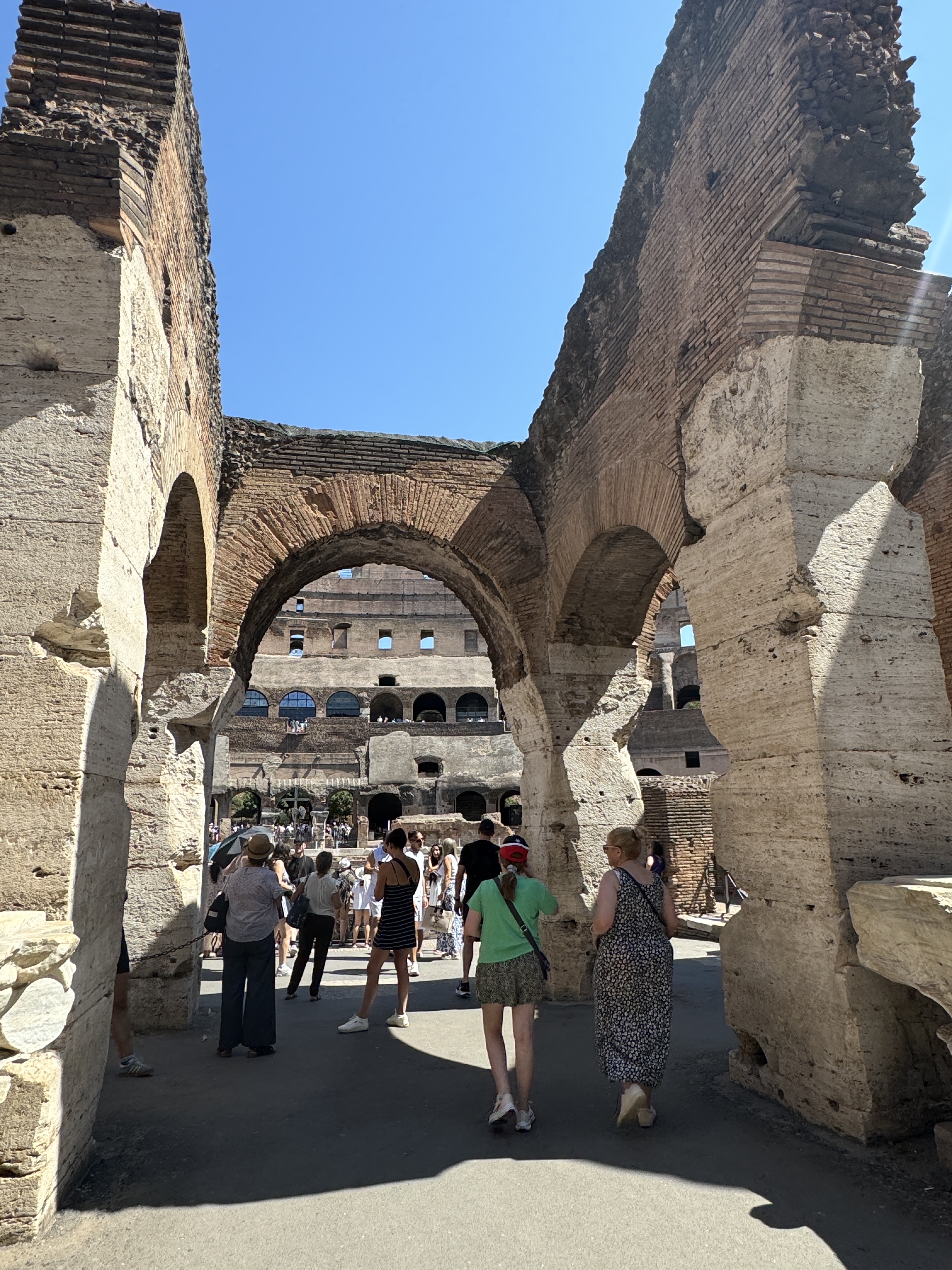 - We then headed to our tour of the Coloseum, Palatine Hill, and the Roman Forum. We found a tour as early as possible because the heat was the hottest of our whole trip: 100 degrees and sunny skies. We pregamed with frozen water bottles and cooling towels.