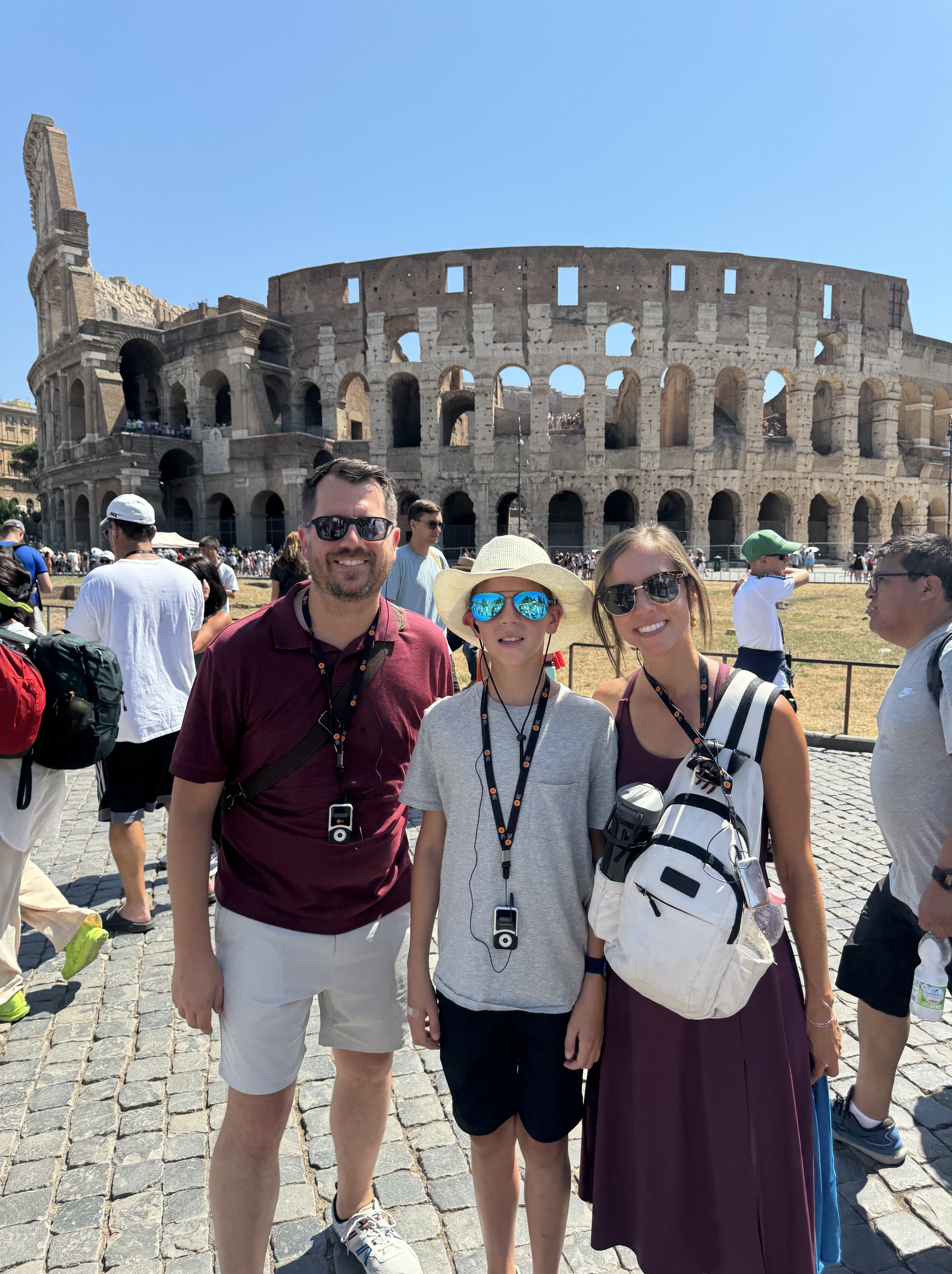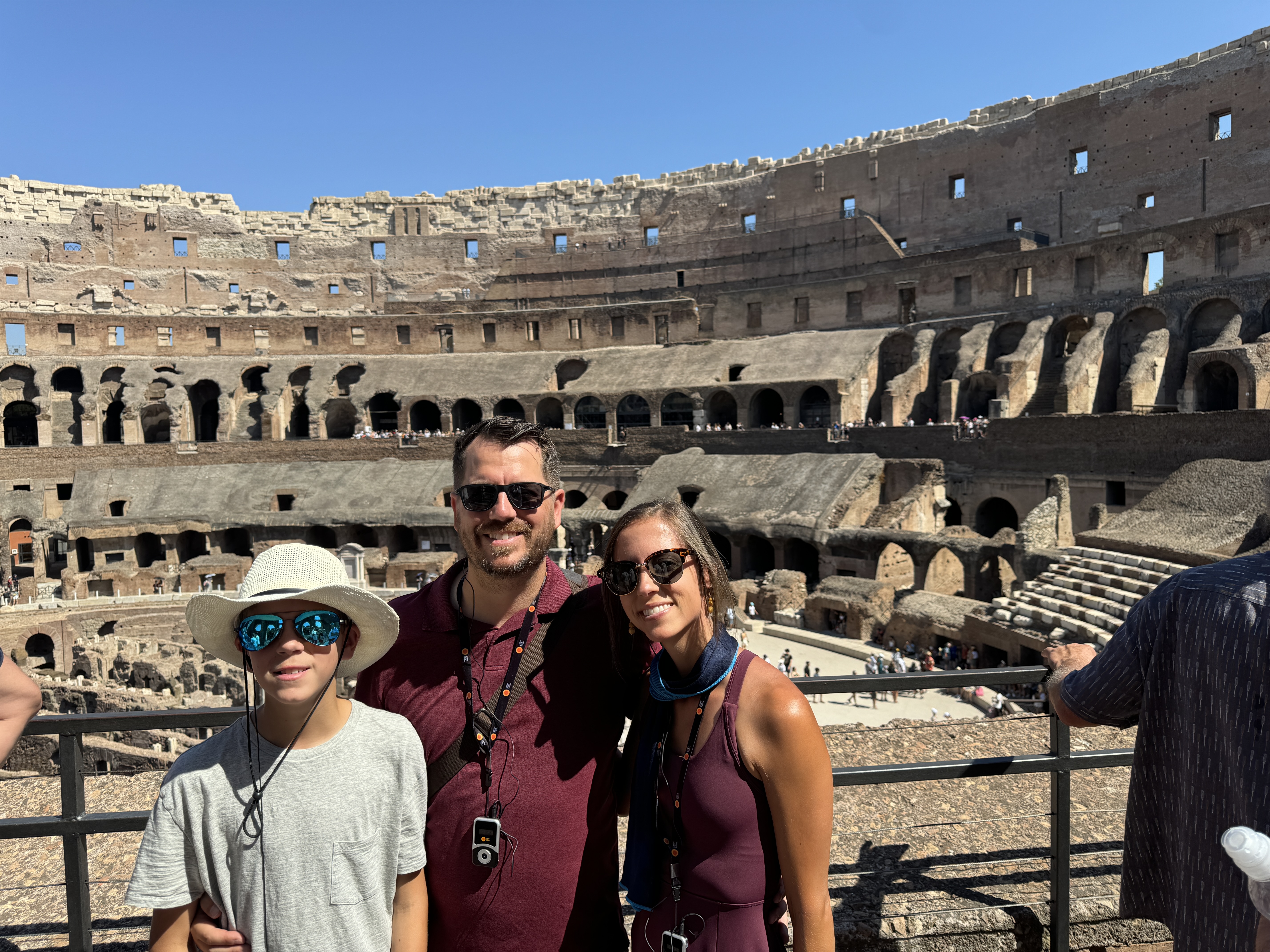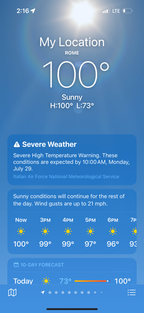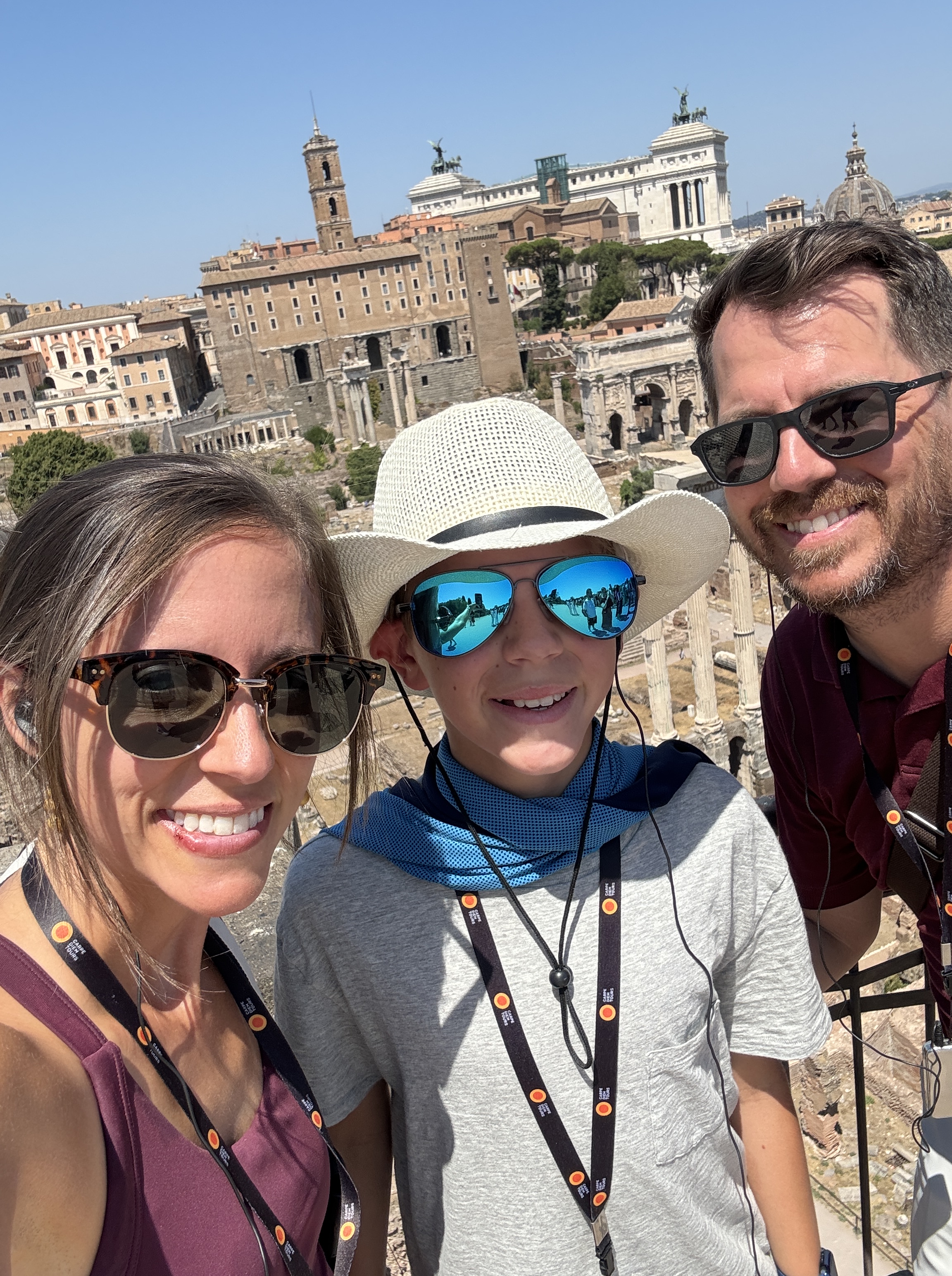 - We then headed to our tour of the Coloseum, Palatine Hill, and the Roman Forum. We found a tour as early as possible because the heat was the hottest of our whole trip: 100 degrees and sunny skies. We pregamed with frozen water bottles and cooling towels.