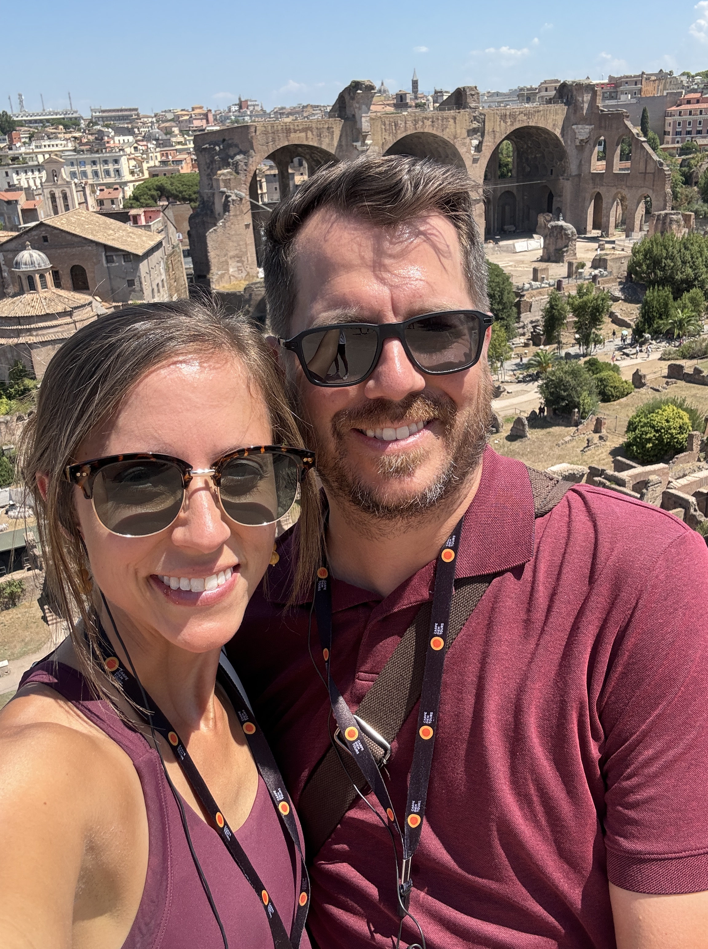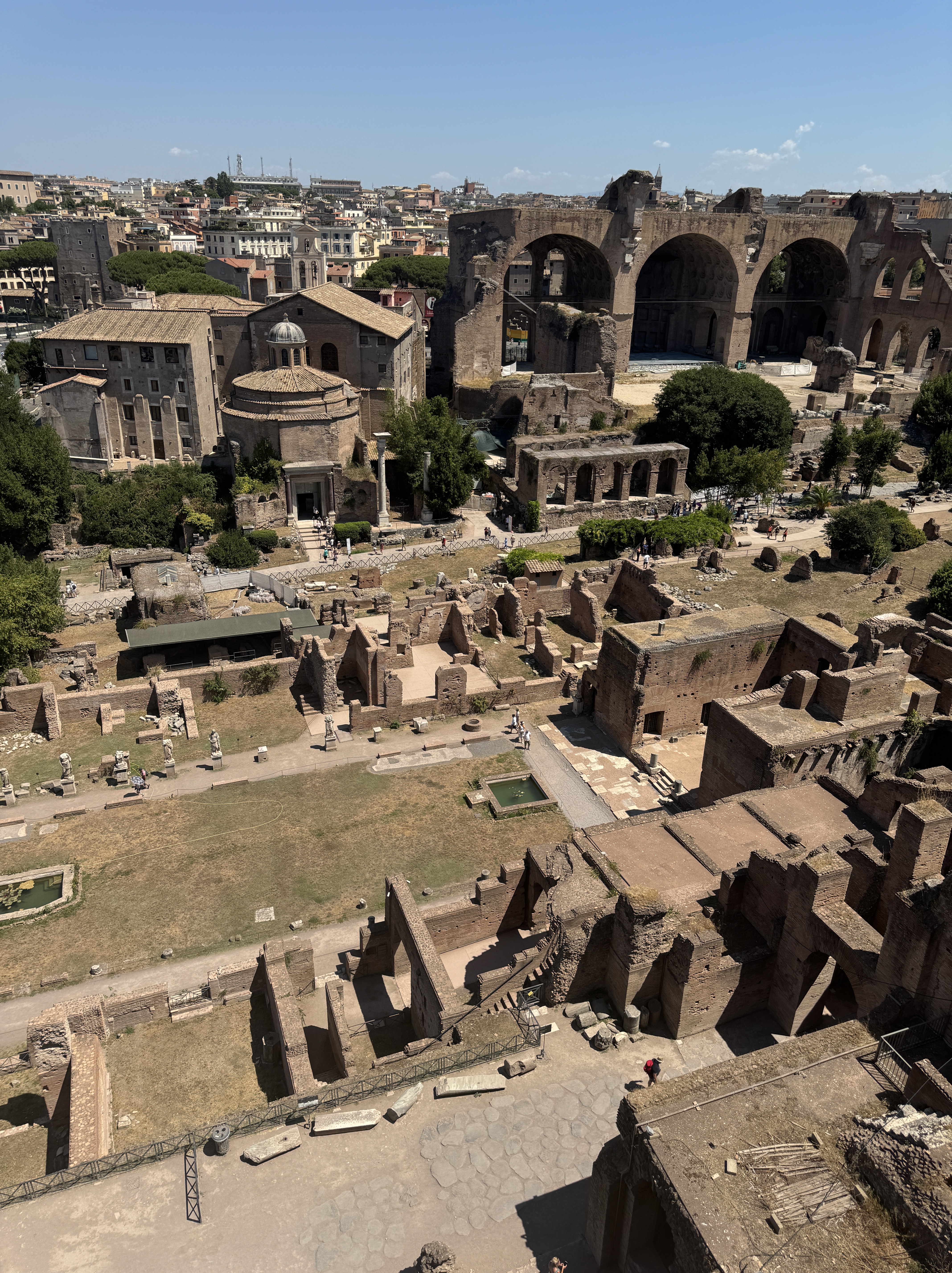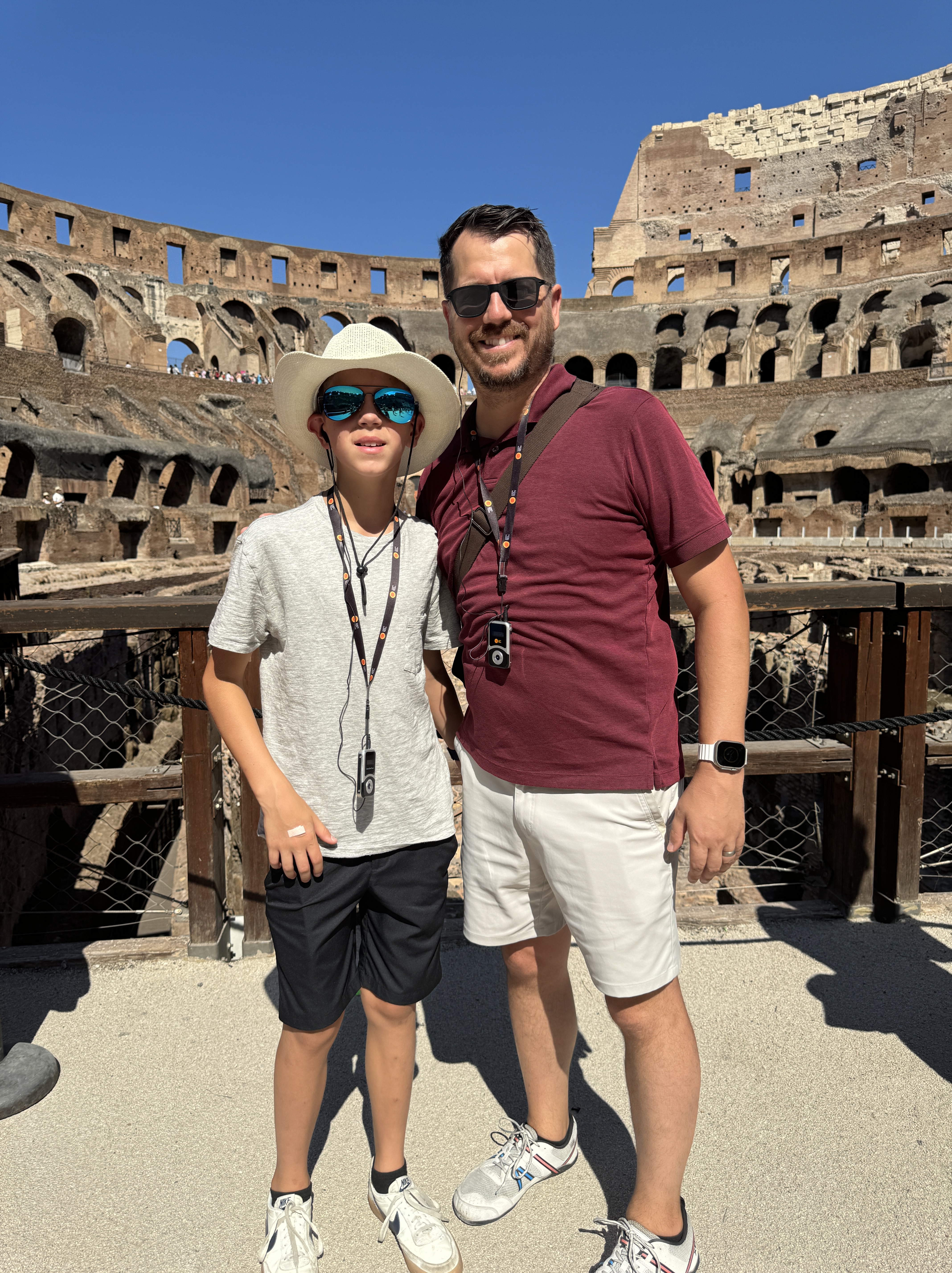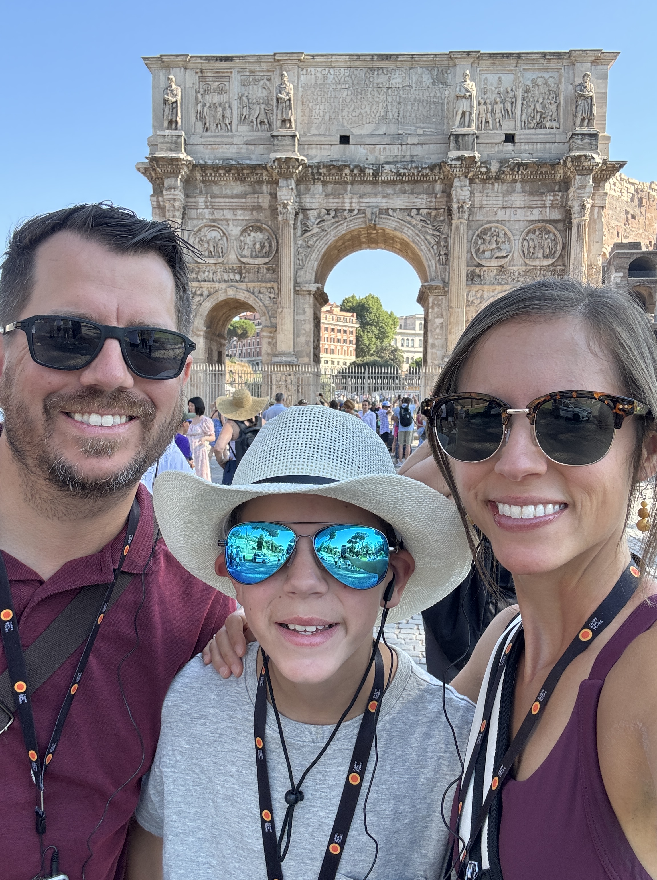 - We then headed to our tour of the Coloseum, Palatine Hill, and the Roman Forum. We found a tour as early as possible because the heat was the hottest of our whole trip: 100 degrees and sunny skies. We pregamed with frozen water bottles and cooling towels.