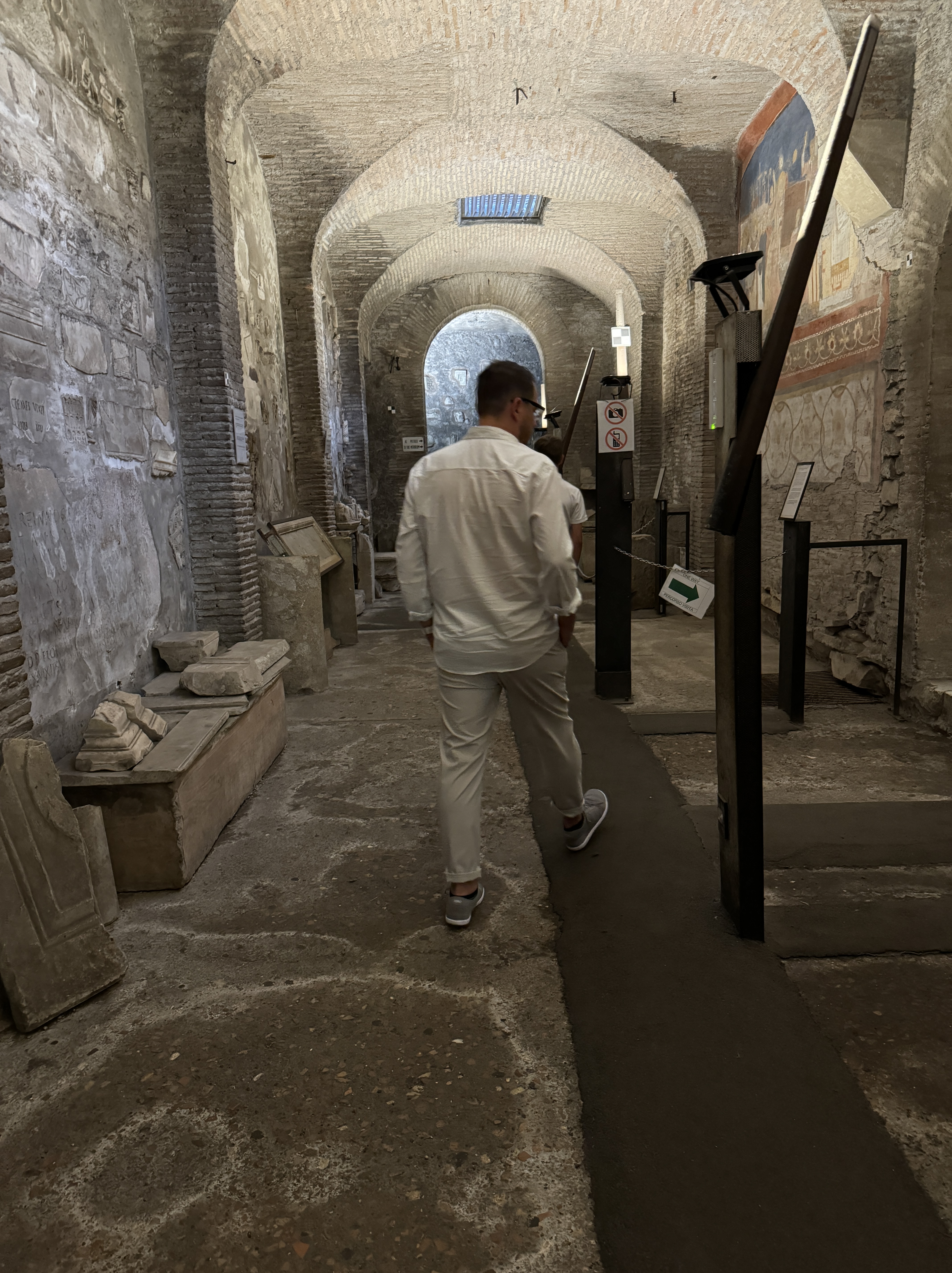 - We did get to walk through the Basilica Saint Clement close by. The cathedral was incredible inside and we got to tour the crypt below. It’s fascinating to see how the city has built history on top of history, just covering up what was there before. There were so many artifacts and faded friezes below. We even found one for Saint Alexis for Lexi! Shout out to Joani for recommending we visit the belly of the basilicas during the heat of the day.