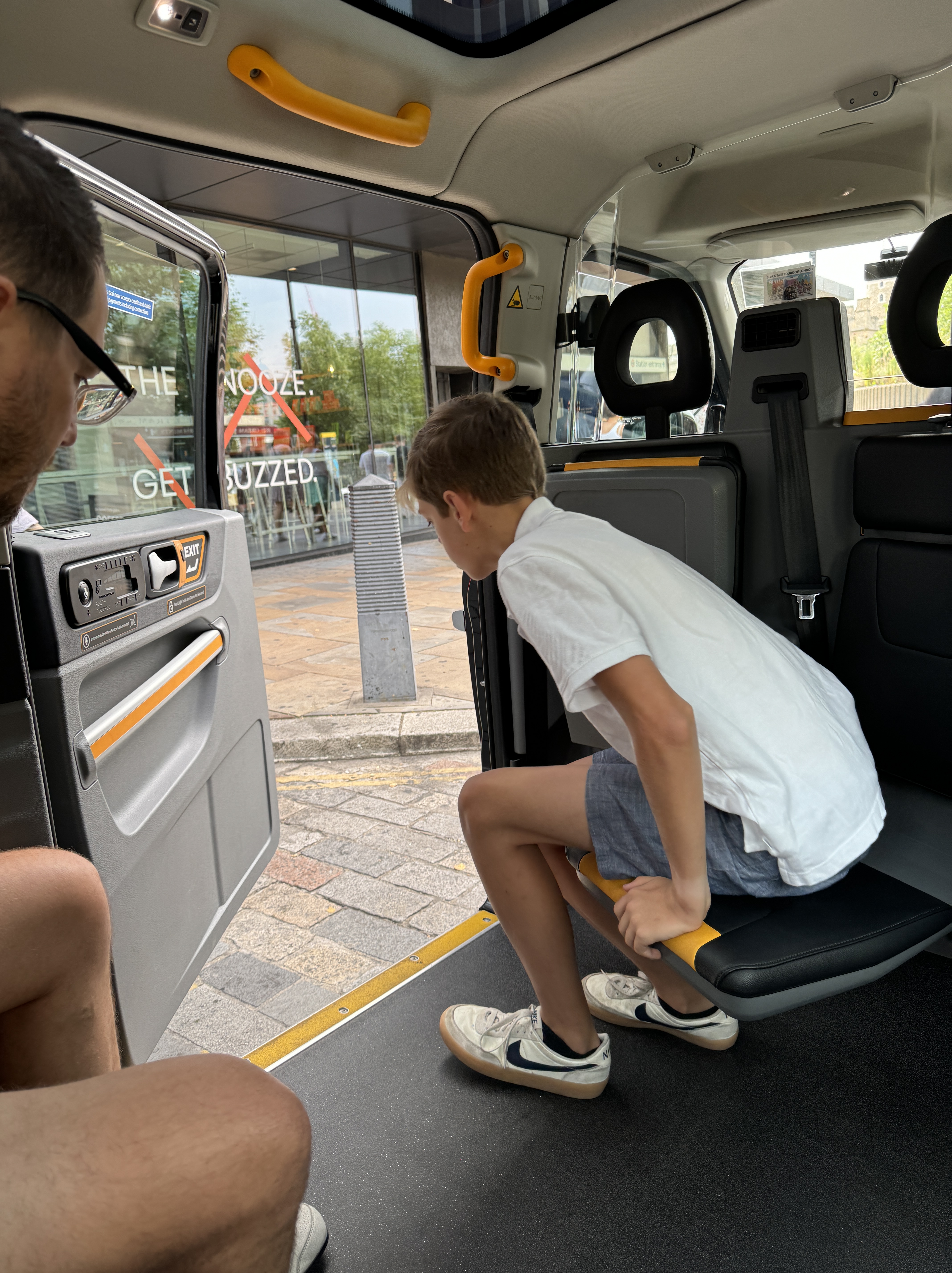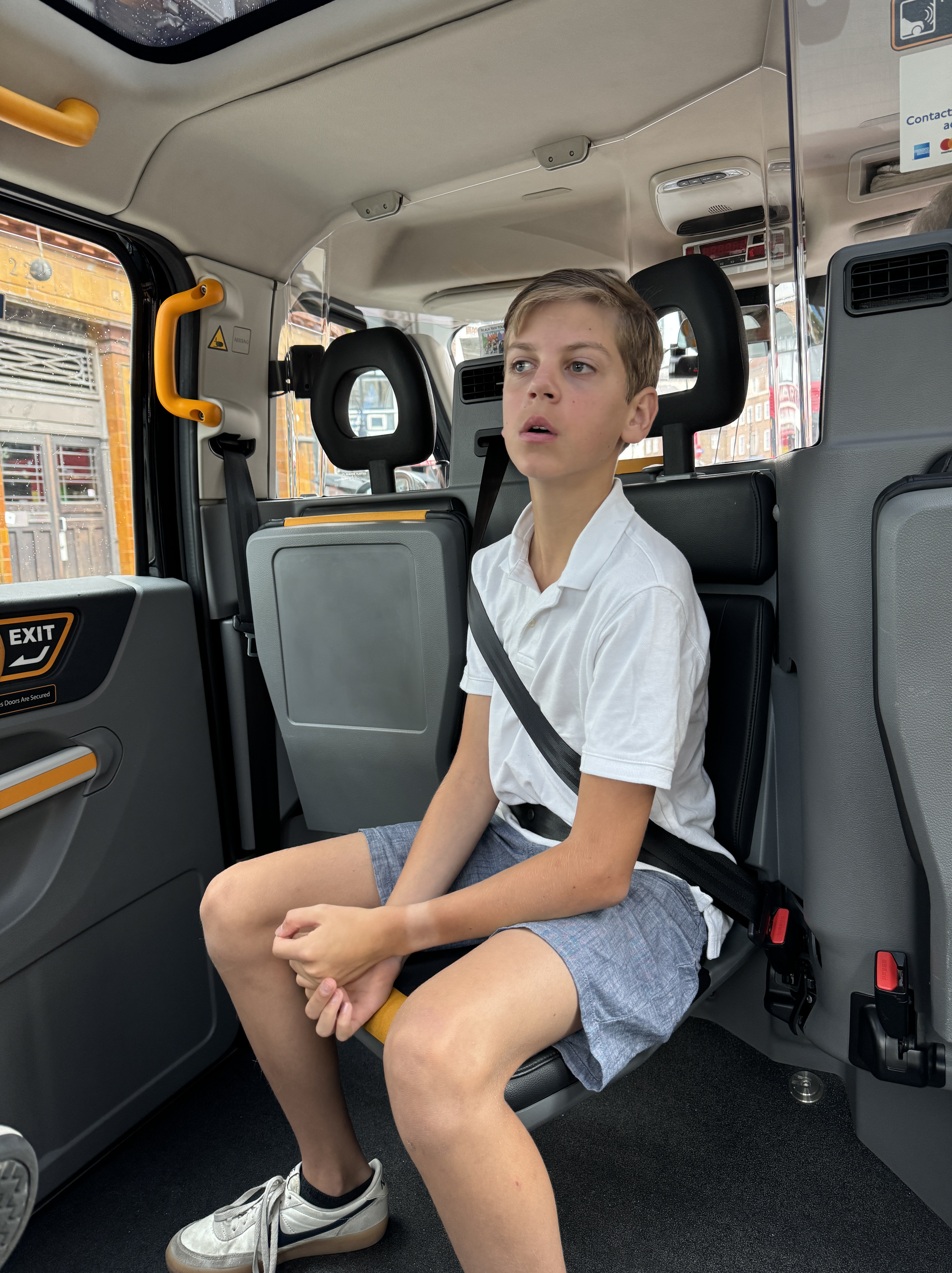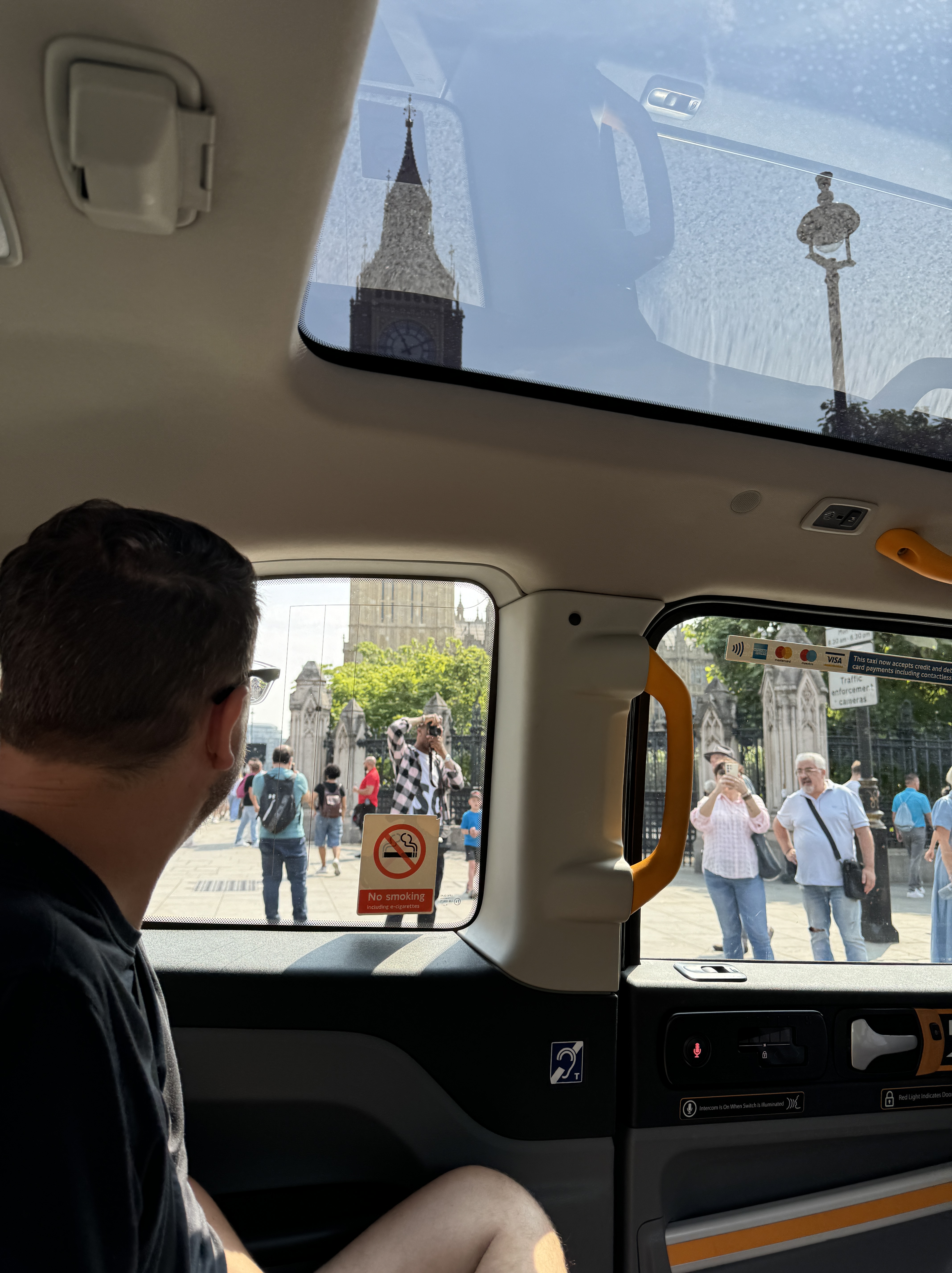 - Today was the first day we had a bit of rain. This made a cab tour even nicer! Of course Liam loved riding backward. Remember how I’ve named the greatness of private tours for family photos? Well today I learned not everyone is a photographer. We got some rather interesting shots today. Here’s my fav. I assuming he’s leaning into the stories of beheadings by only capturing our heads.