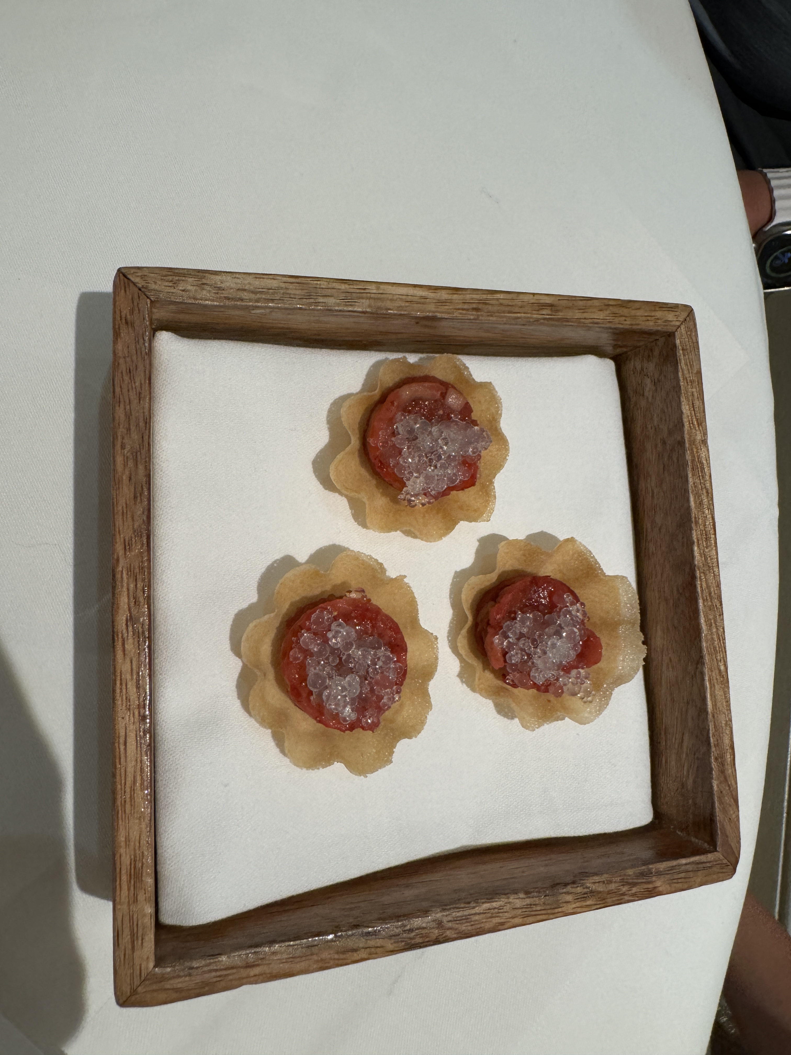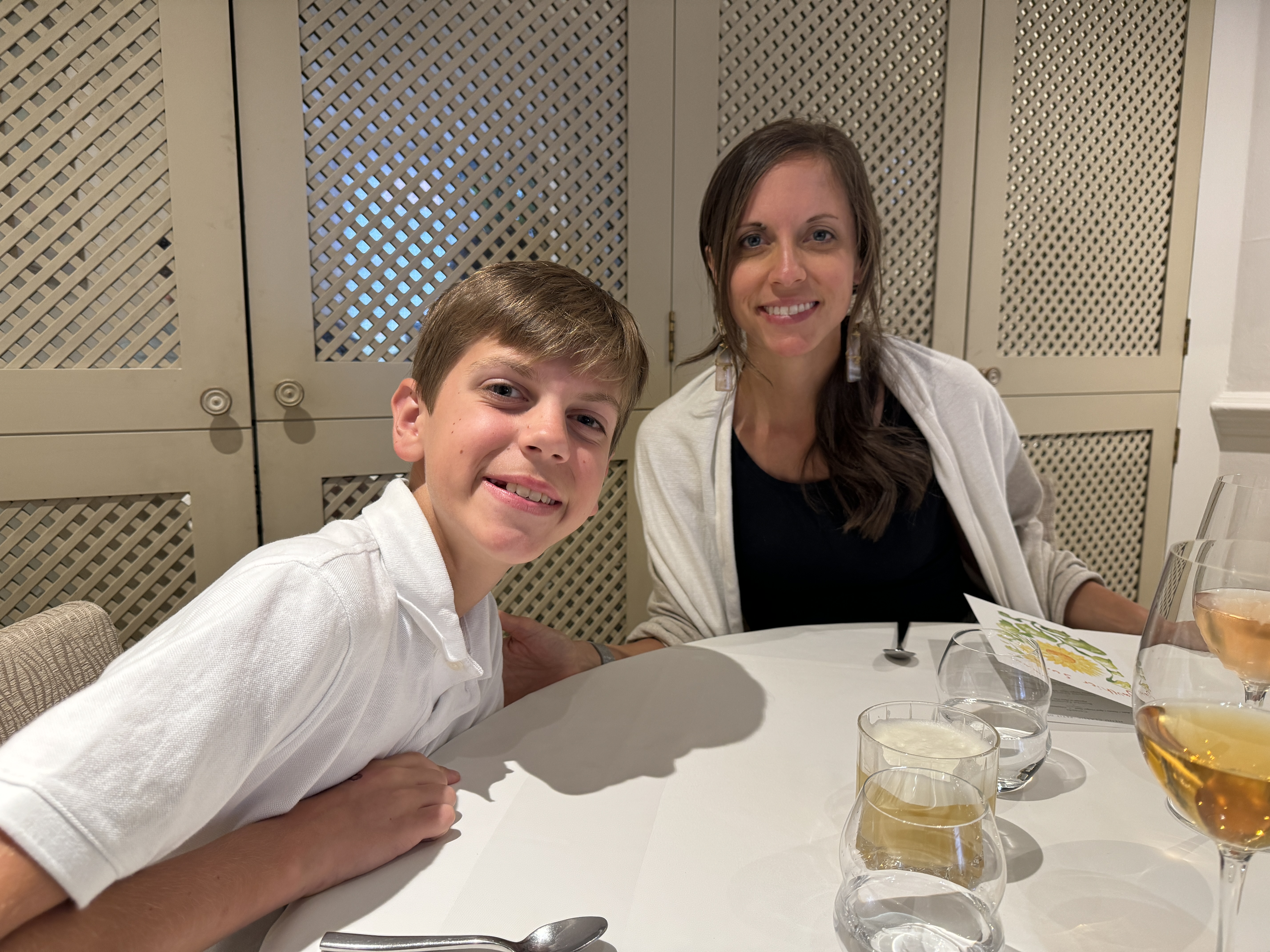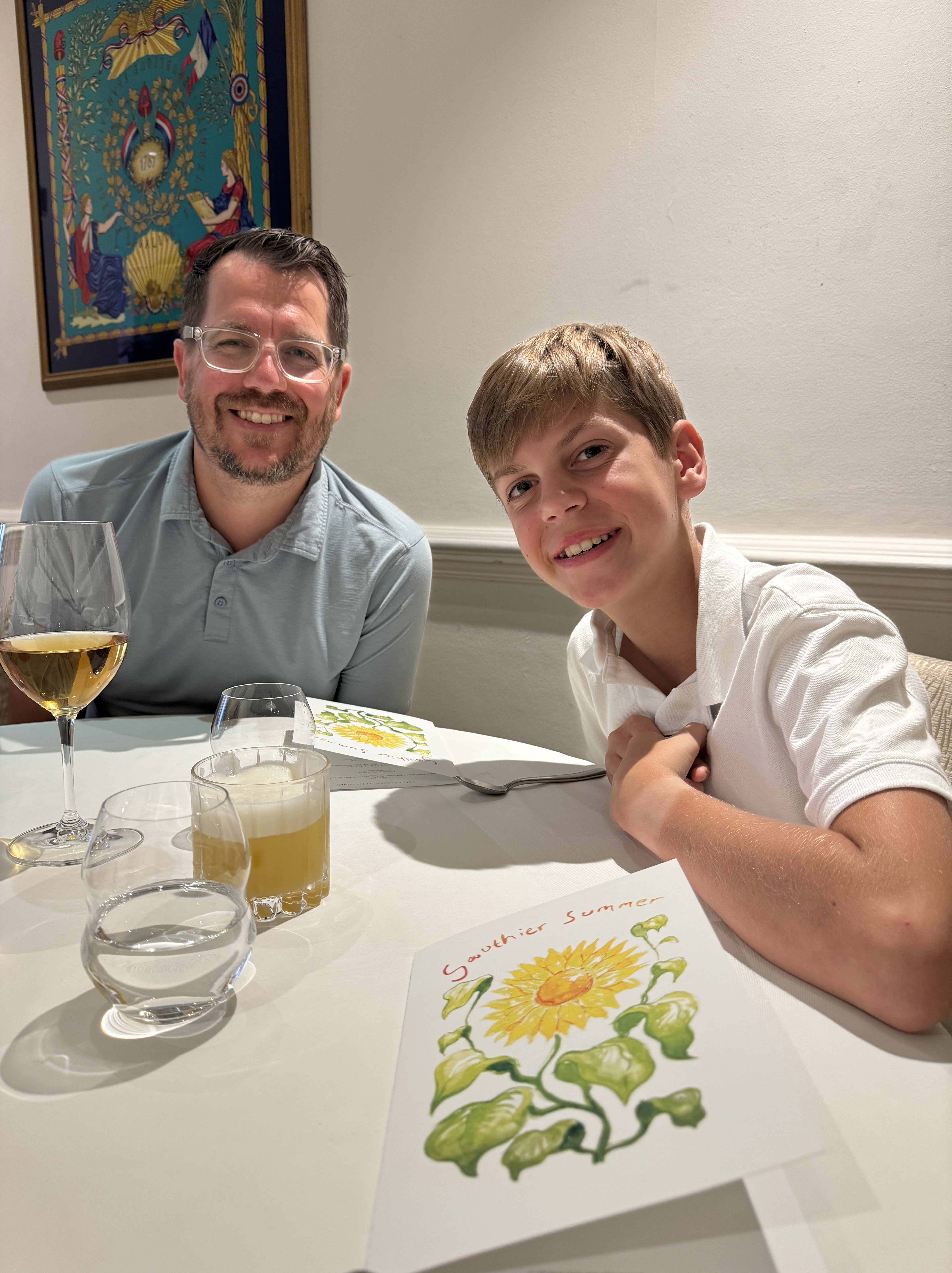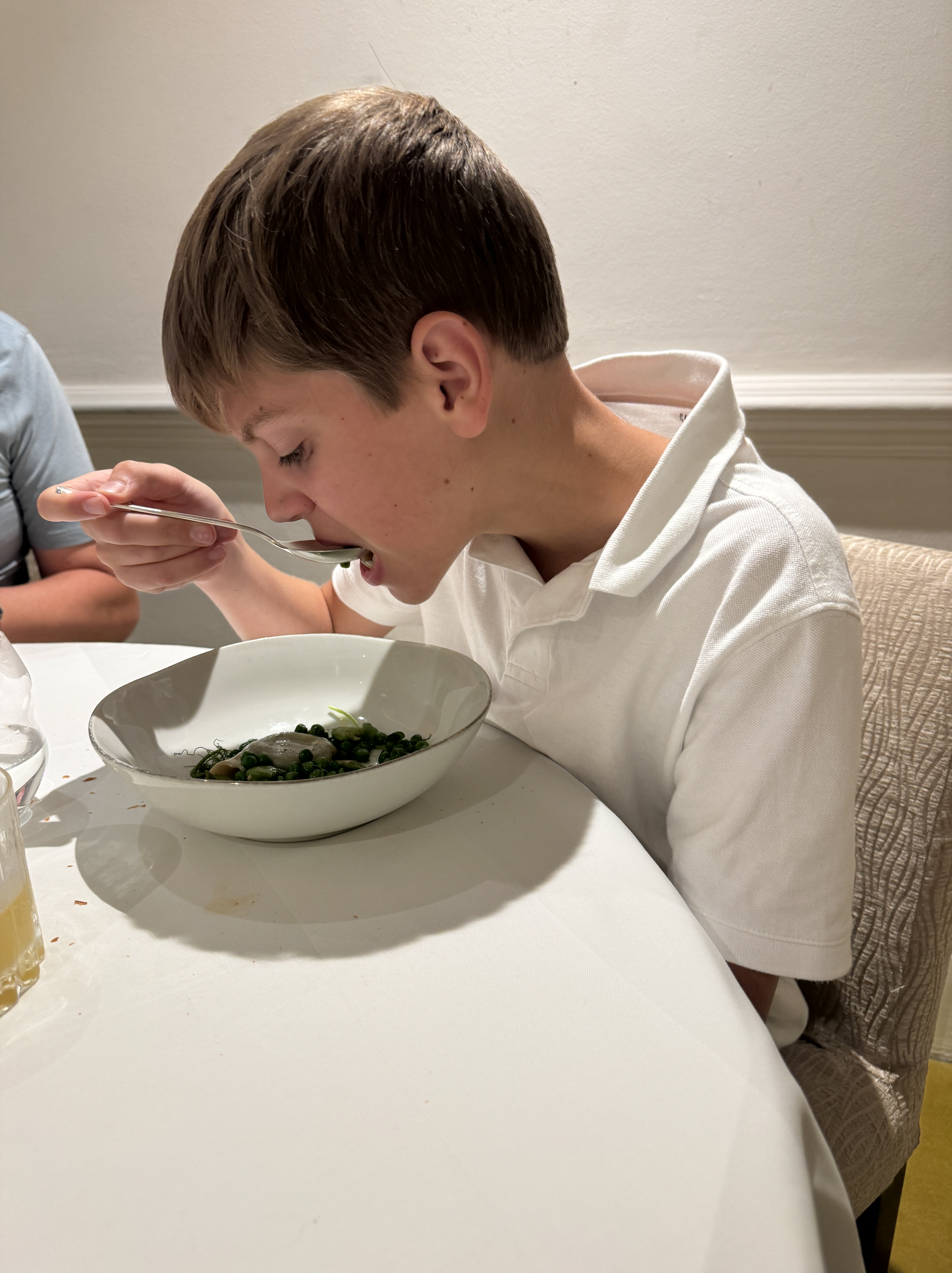 - Alright, the dinner. It was an oh so fancy 7-course summer tasting menu. I love how each course builds on the last and how the staff explains each dish to you before eating. You can feel the love and intentionality in everything from the presentation to the plating to, of course, the taste. We were super proud of Liam. He composed himself well in a fancier than normal setting. I will say he learned French food is not his favorite, but he graciously ate each course and I believe enjoyed the experience.