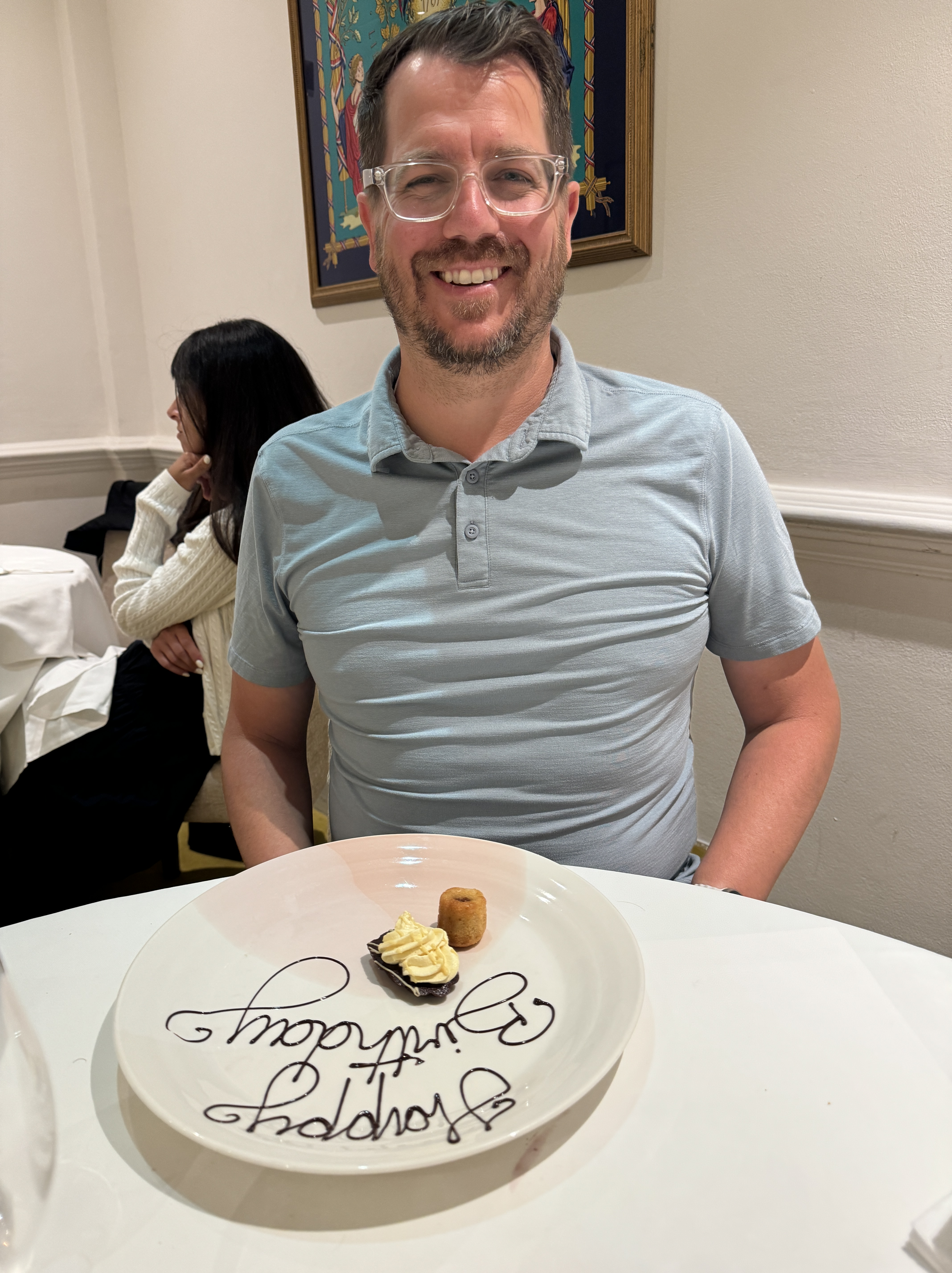 - We ended with the a dessert where they had written Happy Birthday in chocolate. We laughed because they brought it out and asked whose birthday it was. We all blankly stared before remembering we had marked this was a celebratory dinner for Michael’s birthday!