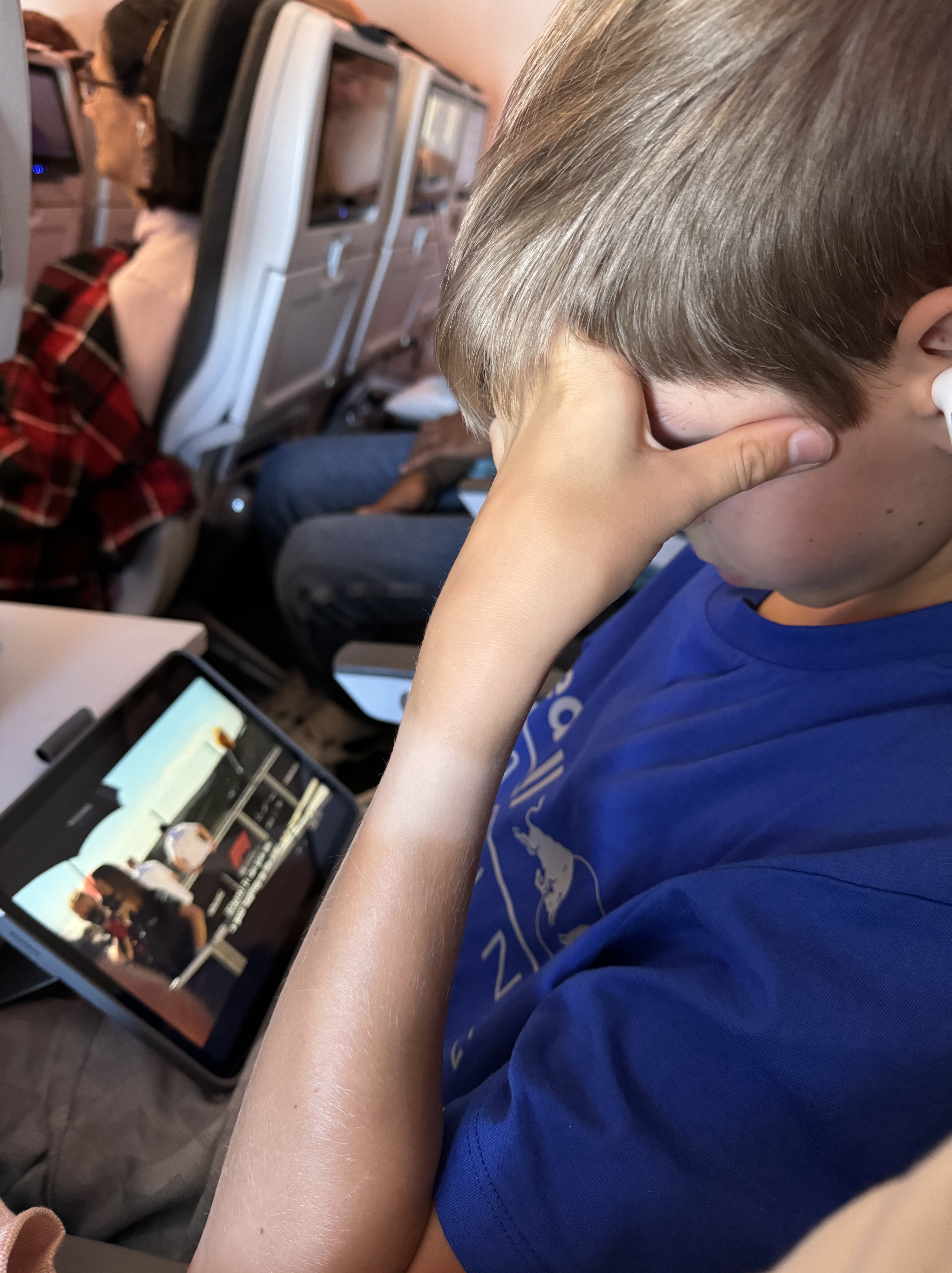 - We got breakfast at the airport and headed to a lounge. This lounge was a bit wild. People and luggage and empty food plates everywhere. We hunted through the maze for seats together and finally found a place to chill.