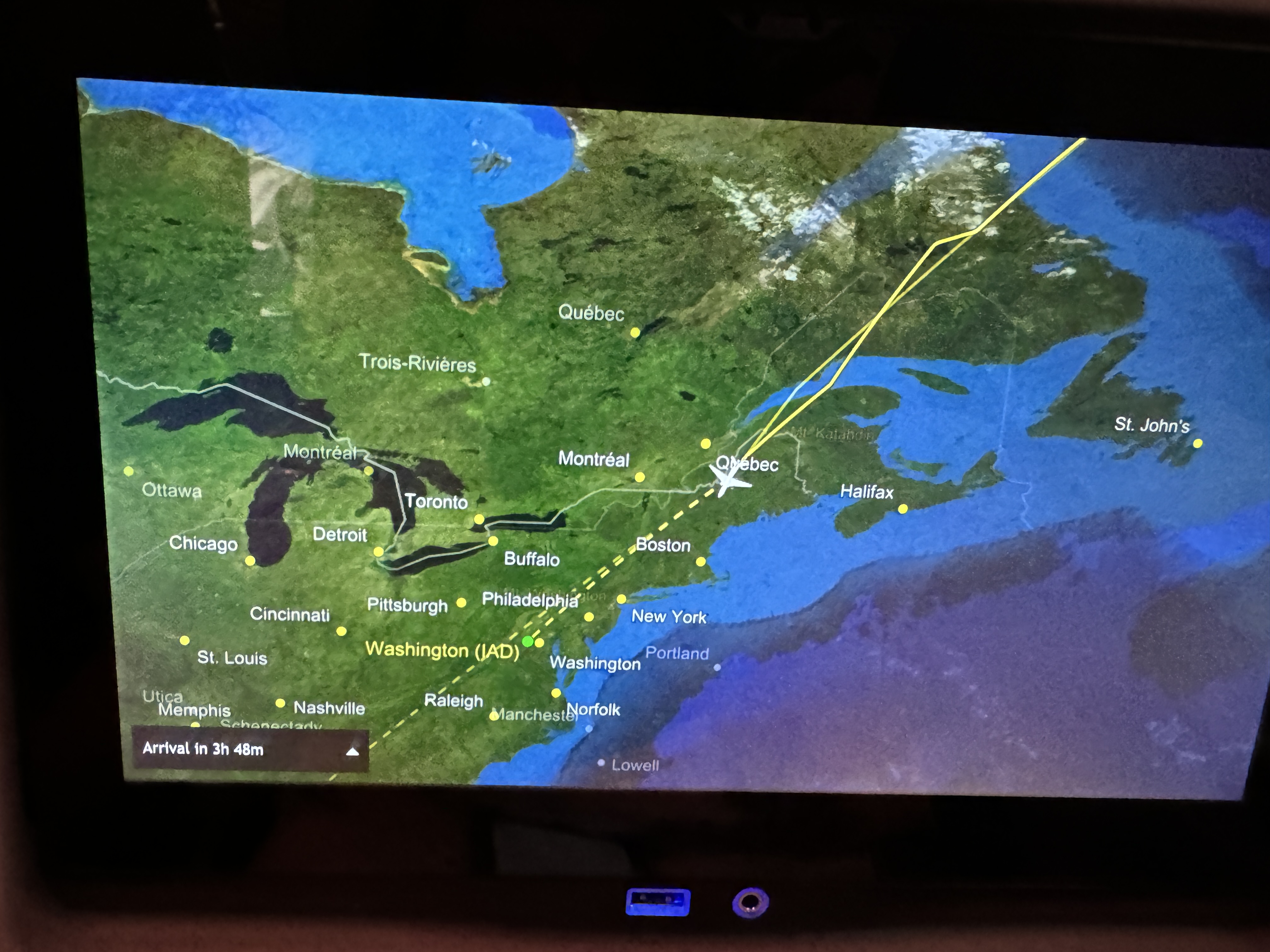- Our goal was to not sleep on this flight. With each delay this got more and more tricky. We were set to land at 10 at Dulles which was 3 am in London. We each listened to music, watched movies/shows, and read while watching the time left in flight slowly tick down on the screen in front of us. That was until Michael and I both saw it go from 1.5 hours left to 3 hours left. What? Why? My joints were screaming at me to throw a fit. I held back the urge and luckily it ticked back in track eventually.