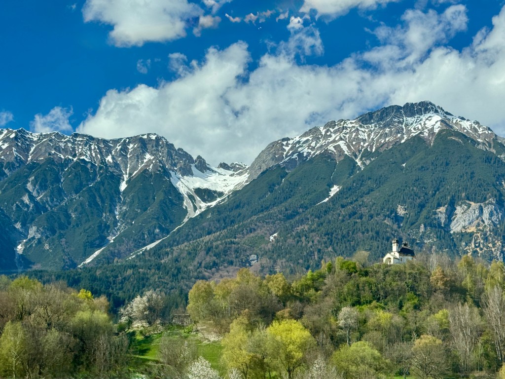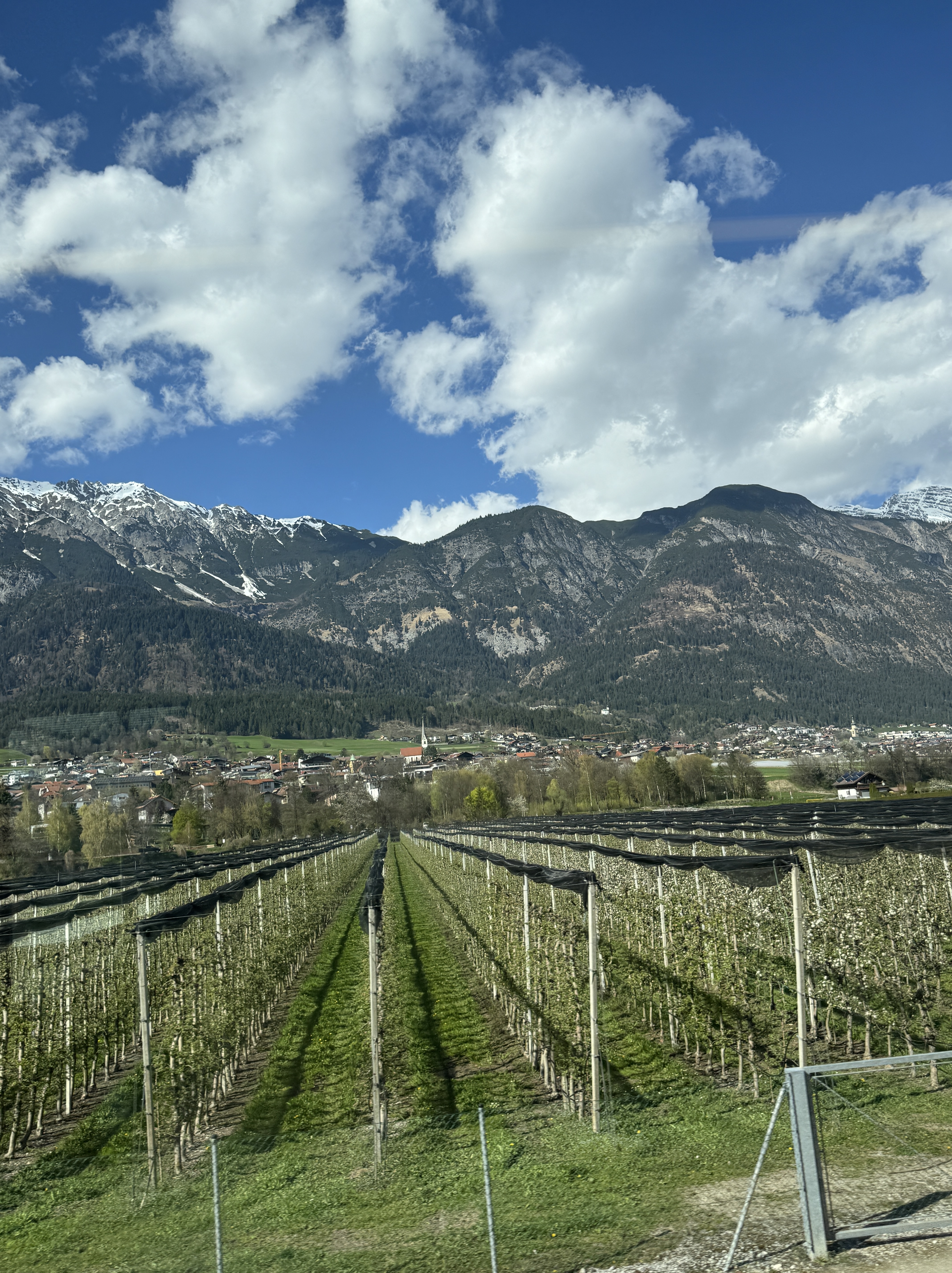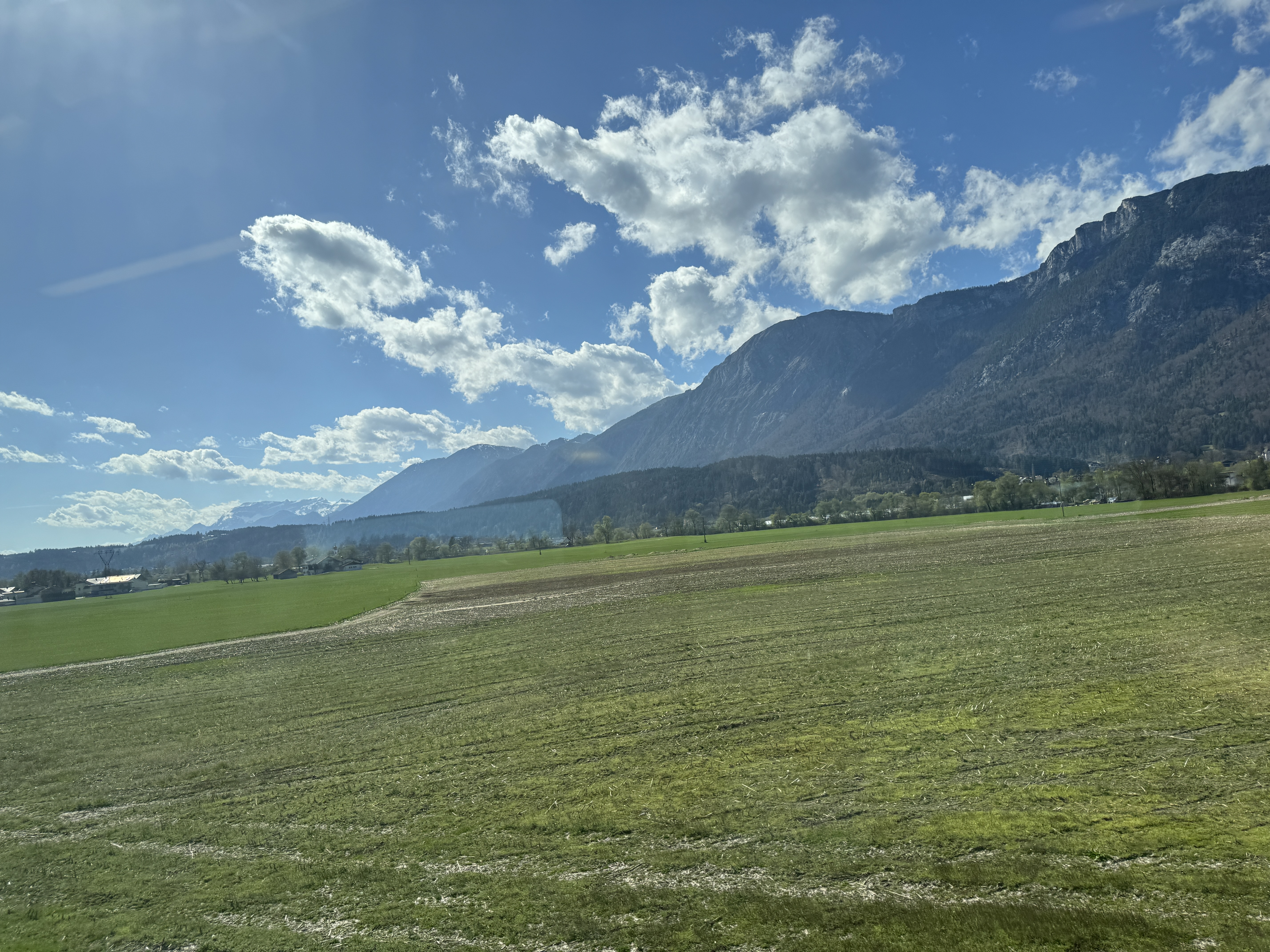 Nothing compares to pulling out of the city on the train to slowly snaking your way toward the Alps. We sat down and assumed the position for 2 hours of intently staring out the window. When we came through the Alps from Italy to Switzerland a few years ago, it was summer. Everything was green. This time around we were awestruck by snow caps and rock faces. We anxiously tried to capture photos as we zoomed past, scoffing each time a tree or building in the foreground would block our view. When we could peel our gaze away from the mountains, we loved looking at each small Austrian village equipped with white stucco homes, farm animals, and always a rounded spire church in the center.