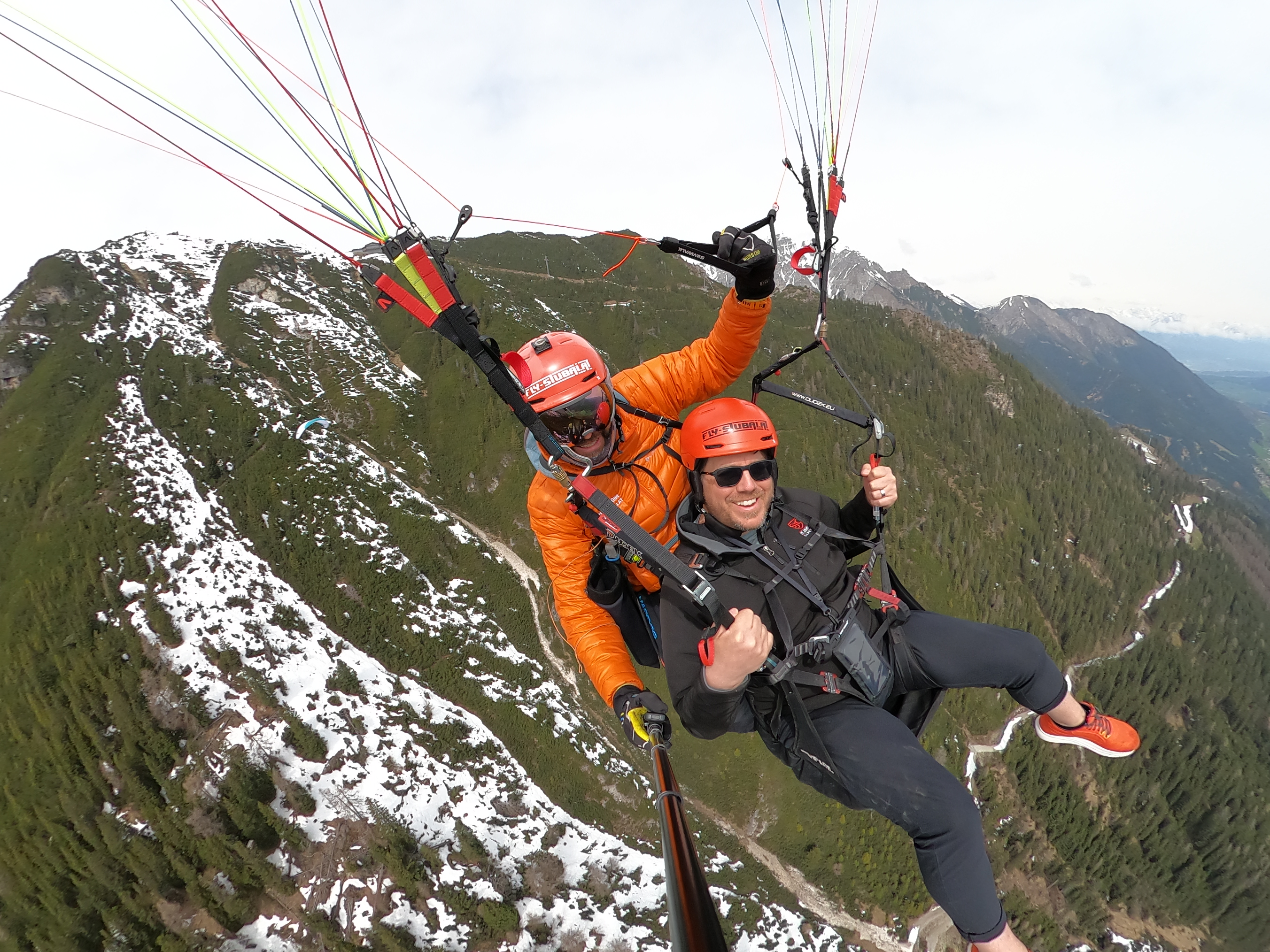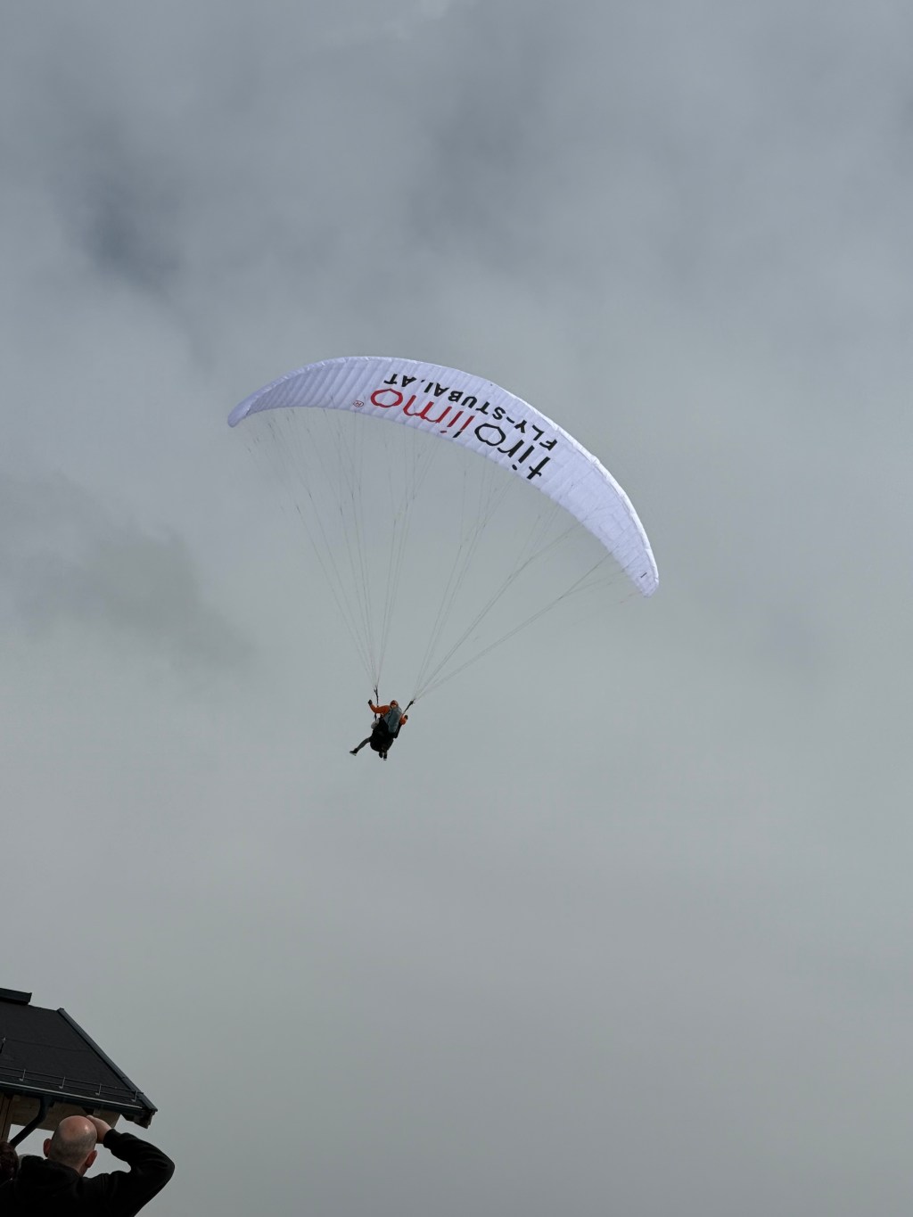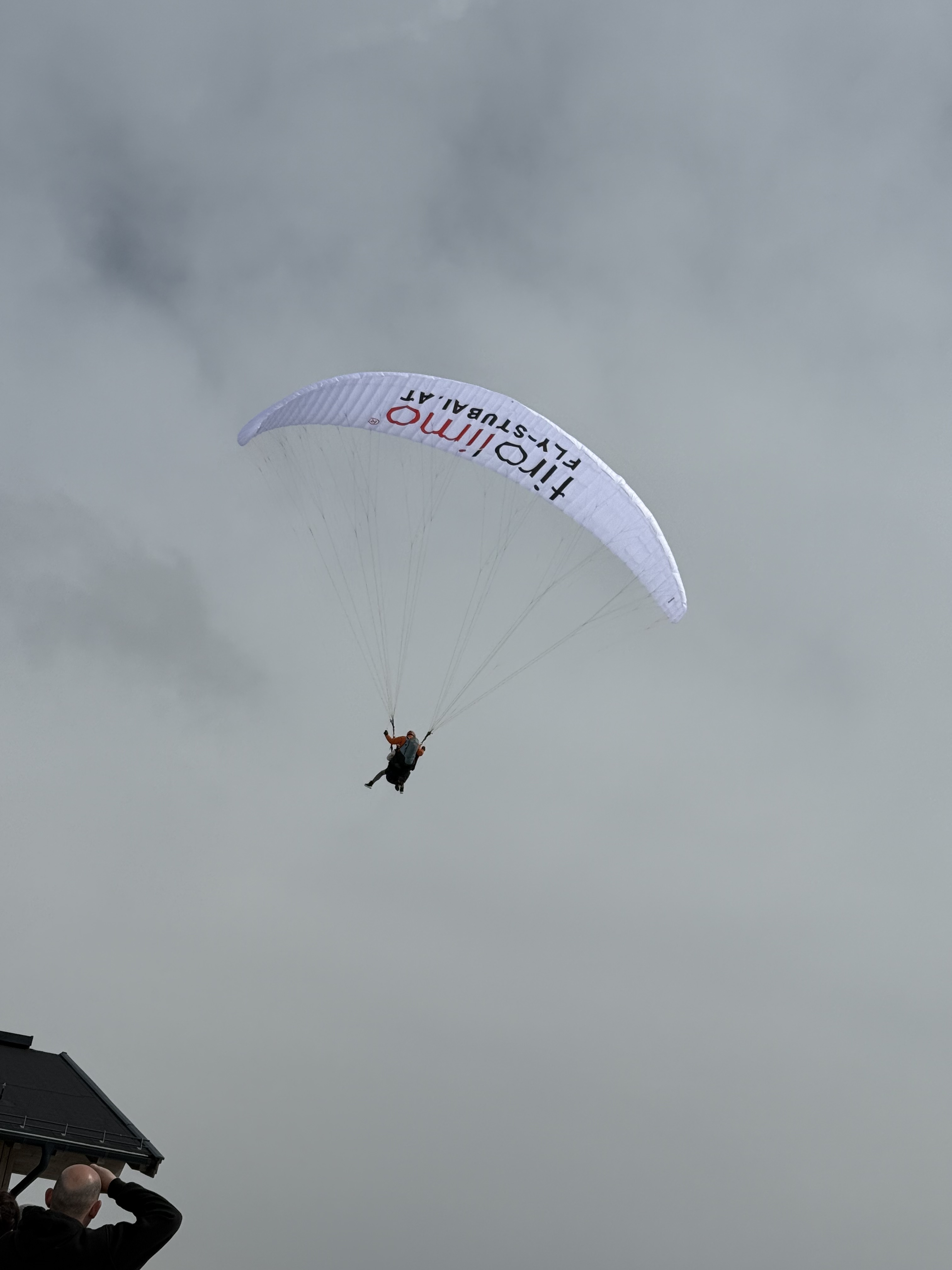 Today’s expedition was the one we had anticipated the most: paragliding off the top of the Kreuzjoch peak (2,558 m). While this was supposed to happen tomorrow, it got shifted due to it being the last day of the season for the cable car. Perfect timing!