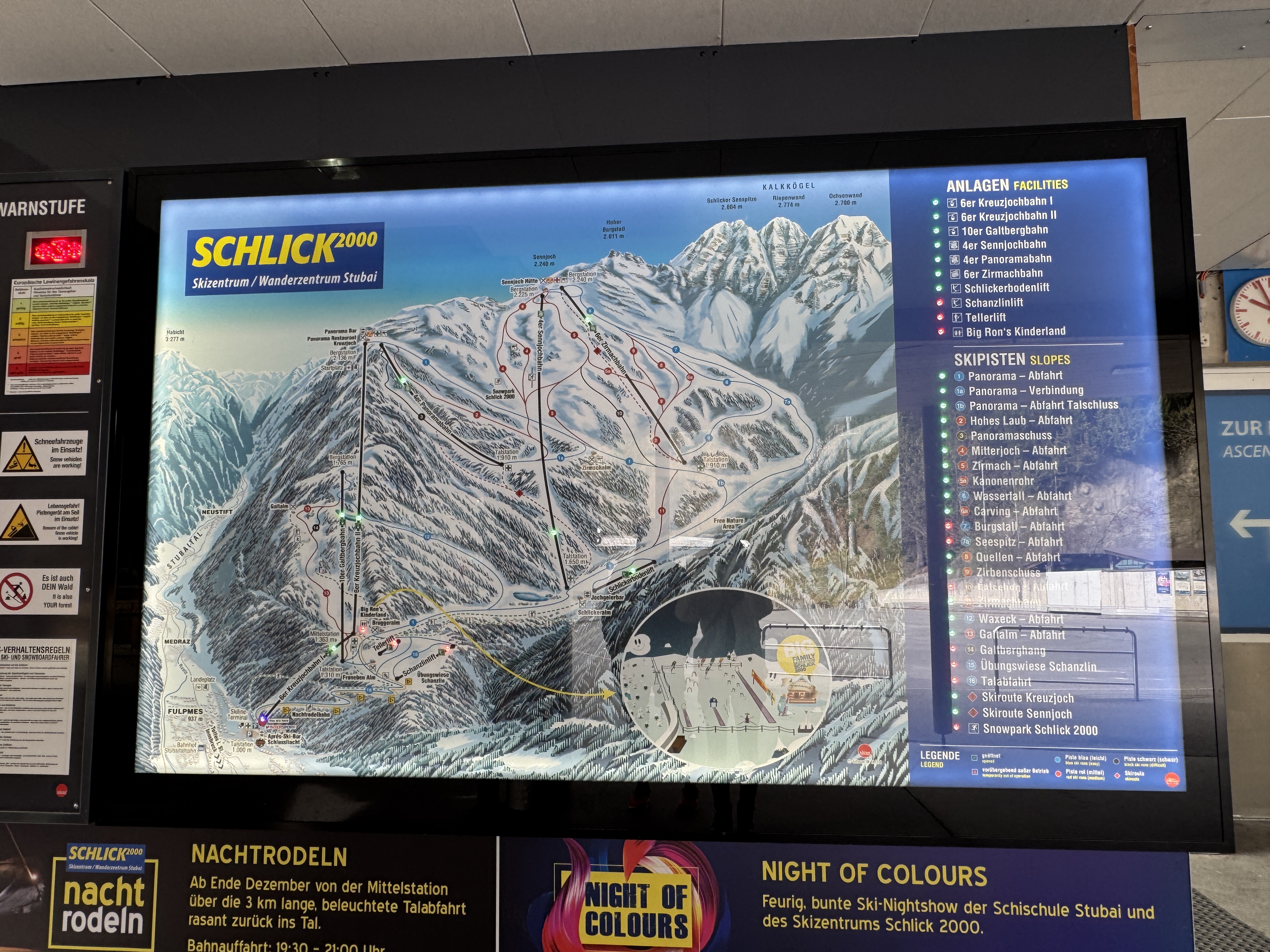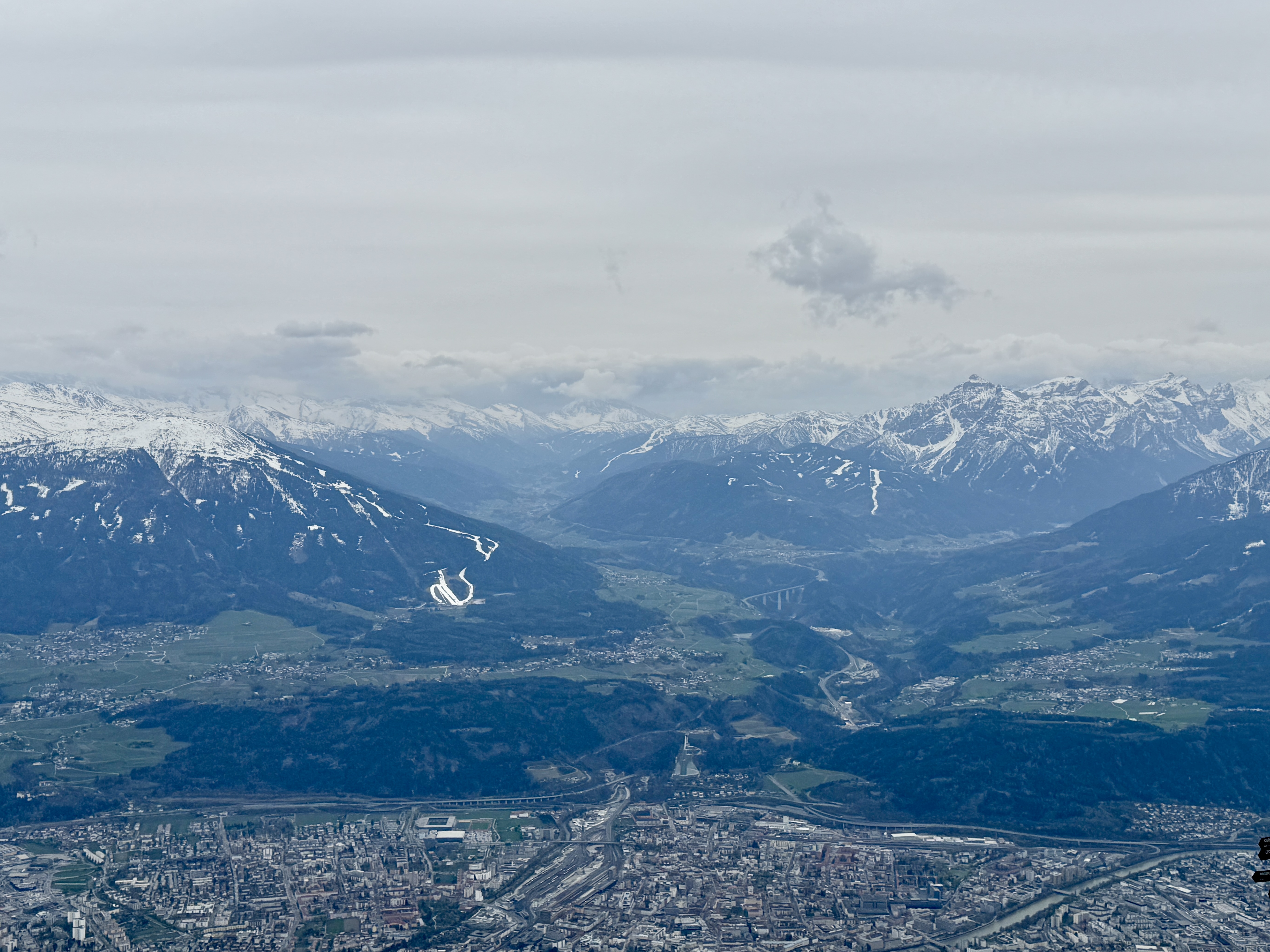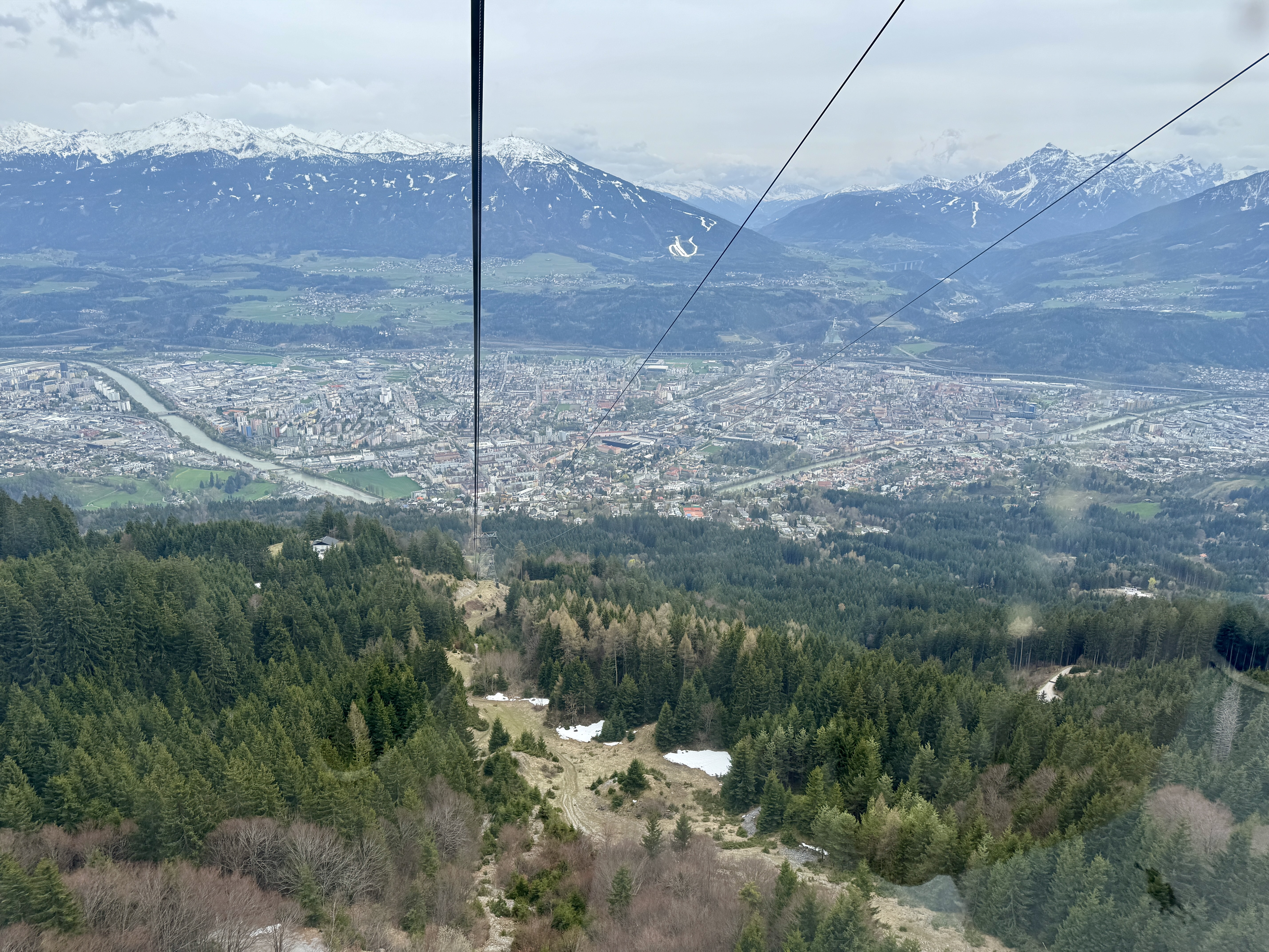 While we originally planned to hike in the afternoon, the week’s forecast set it so today was our only chance to go up the cable car Nordkette to the top of Innsbruck. So, we headed back to drop the car at the airport and return to town by bus for some lunch.