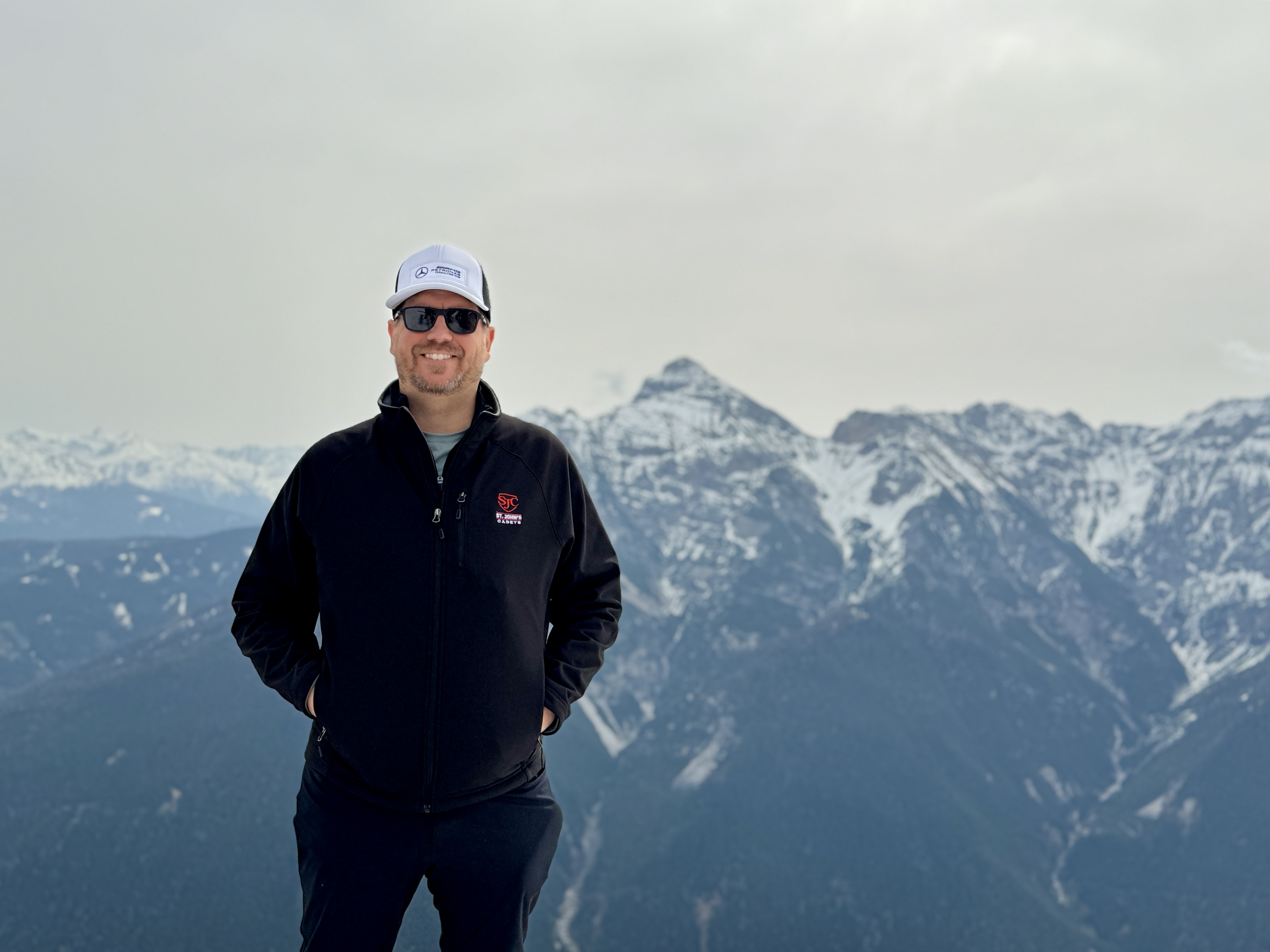 When we went out to meet our pilot, we noticed just one was approaching. This was odd since Michael and I were supposed to fly simultaneously. It turns out the second pilot was home sick. One at a time was fine by Michael, because he got another hour of mountain peak views from an adirondack chair on the edge of the cliff.