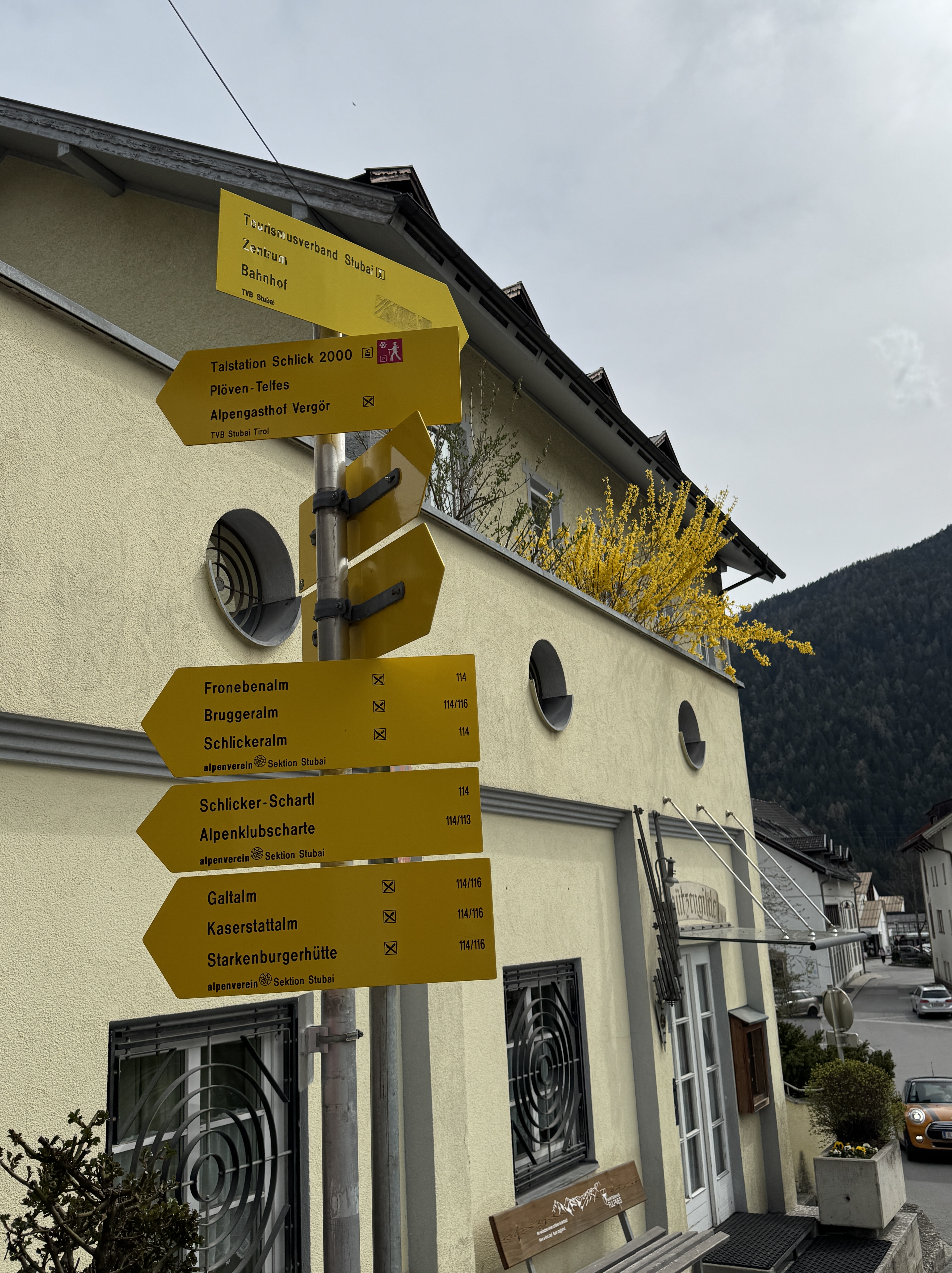 The poor pilot was so patient while he gathered his supplies and gave white-faced me directions through the town to the alternative landing spot where I would meet Michael. I grounded myself and set off for a stroll through the quaint town of Fulpmes along hilly, cobblestone streets out past the town to a new open field.