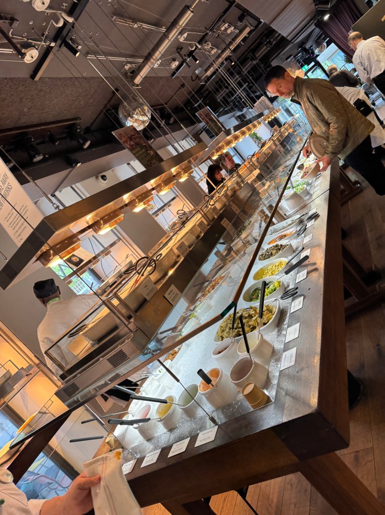We were excited to have a 2 hour window in Zurich. When we traveled there as a family, we ate at an amazing vegan/vegetarian buffet called Hiltl (the oldest vegetarian restaurant in the world). We had just enough time to drop our bags in a locker and make our way there. We may have called on Uber to then realized it was only an 8 minute walk. Oh well! We filled our plate and bellies to the brim before making our way back to the station.