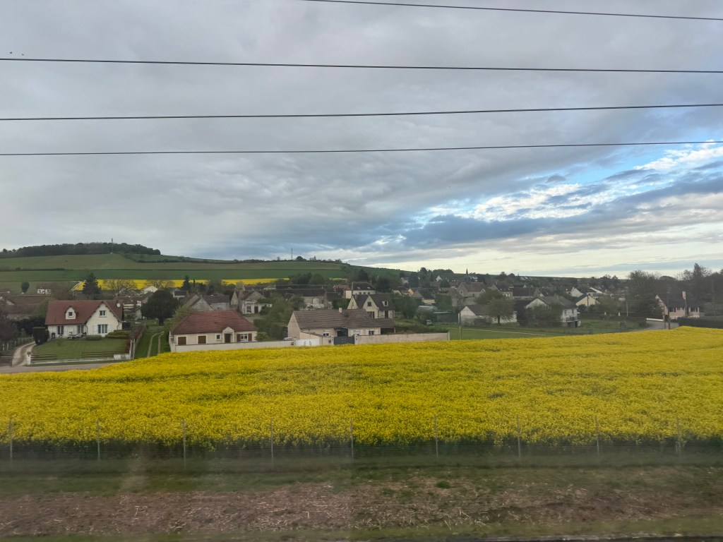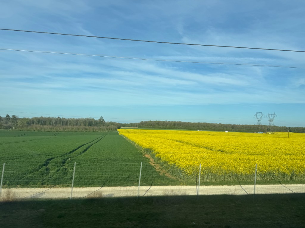 Our second train ride was on the famous TGV. Well, famous to me at least (I remember talking about this train in my high school French classes). This high speed train was going to take us twice as far in the same amount of time, and we were got to ride on the second level. We made our way out of Switzerland, through Liechtenstein, and finally into France. We were greeted by fields and fields of stunning bright yellow that turned out to be the plant used for canola oil.