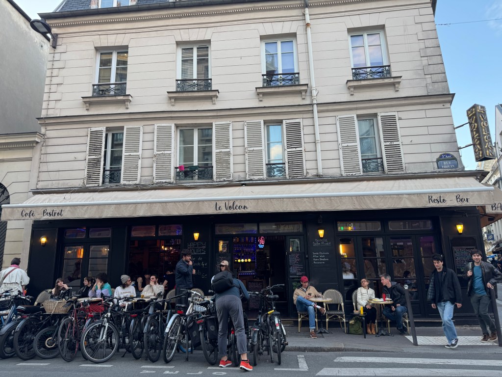 Regardless of it all, there truly wasn’t time to take in the reality of where we were once the train stopped. We had a mad dash to make. We hopped off the train and into an Uber (we will learn the metro tomorrow) to our Airbnb in the Latin Quarter. The instructions for getting our keys included using a passcode on a lockbox on the full bike rack at the crowded restaurant across the street. Talk about convoluted.