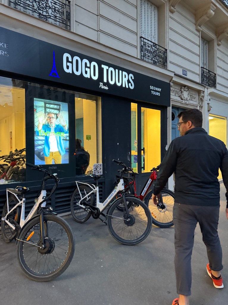 With no real time to gaze and unpack, we headed back out to a second Uber to our event for the evening, a private guided e-bike tour through the streets of Paris.