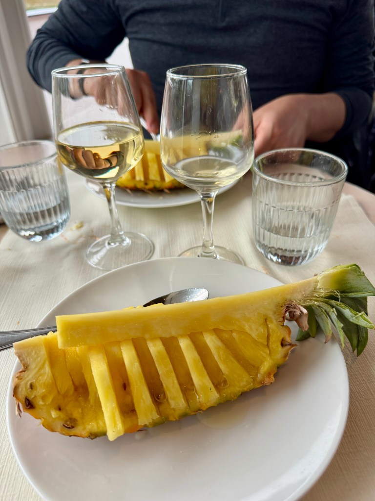 One thing that has been tough while being away for 10 days is missing our family. Though we’ve got to talk with Liam most every day, we haven’t gotten to interact with Capital with his love language (belly rubs). We definitely missed giving him belly rubs but fortunately, this restaurant had a substitute puppy that guarded the restaurant. After Michael gave him a quick rub on the head we were on our way.